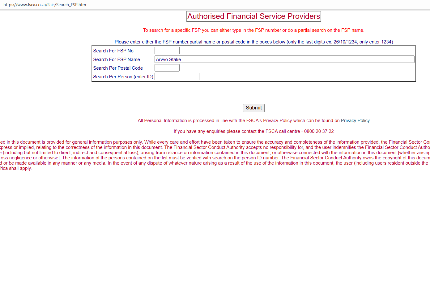 According to its website, it claims to be regulated by the Financial Sector Conduct Authority (FSCA). Upon investigation, no matching information was found in the FSCA. In addition, the Financial Conduct Authority (FCA) issued a warning regarding arvvo-stake.com, suspecting that this company may be offering financial services or products without the necessary authorization.