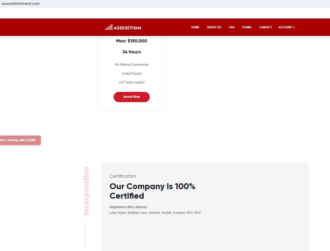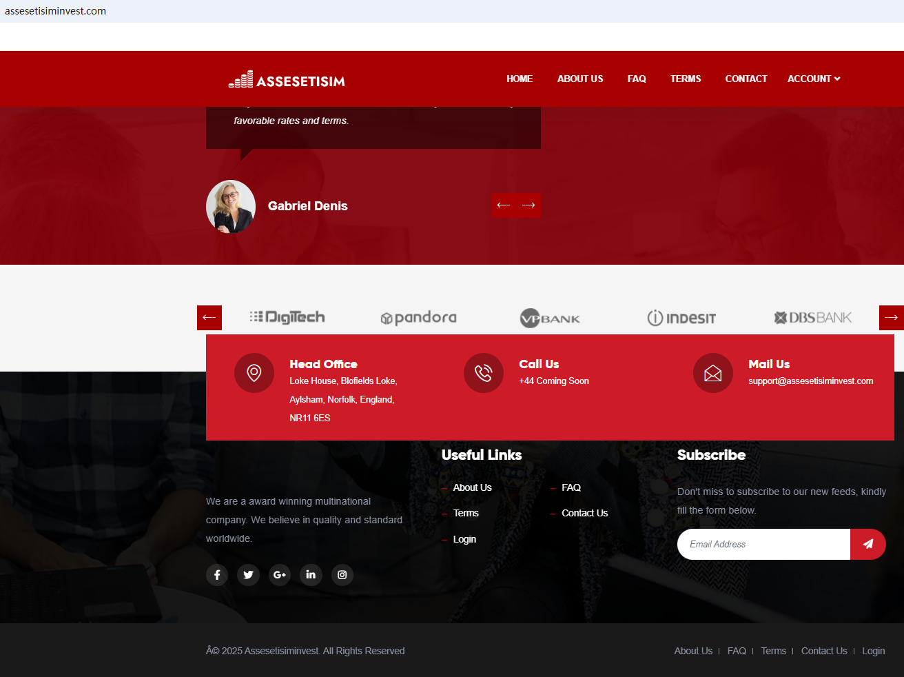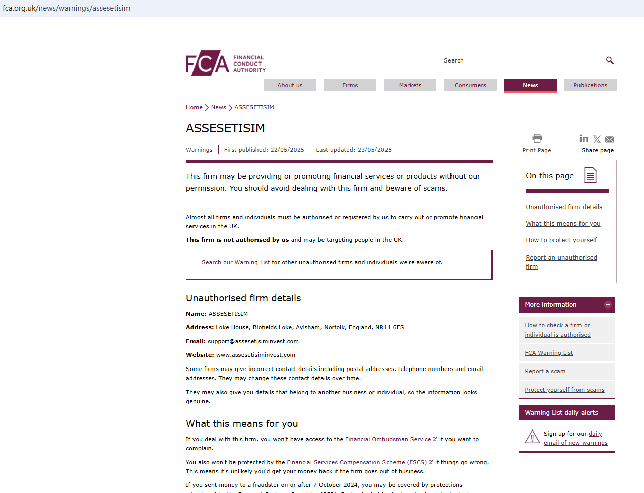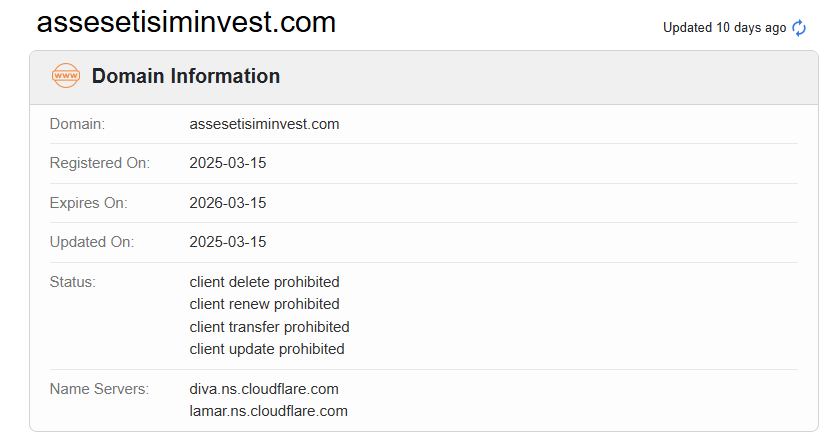 According to its website, it claims to be registered in the UK in 2015. Upon investigation, we found that its domain name was only established in 2025 and the Financial Conduct Authority (FCA) issued a warning against ASSESETISIM, believing this company might be providing financial services or products without proper authorization in the UK.