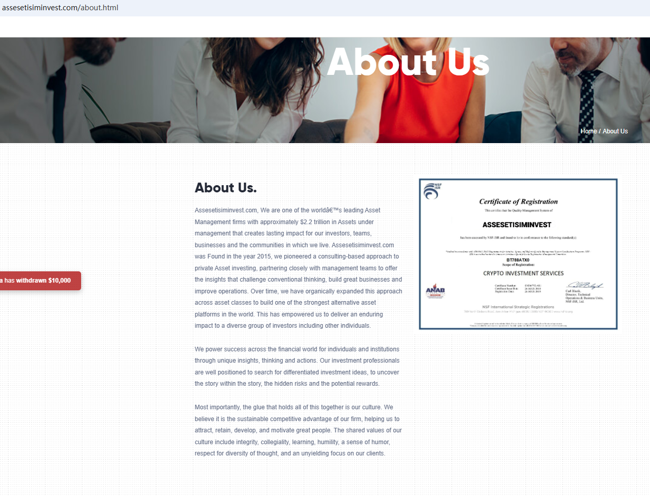 In essence, ASSESETISIM is not regulated by any governing body. Entrusting it with investors' funds is highly risky, as there are no legal protections in place to safeguard the funds. ASSESETISIM appears to be a scam.