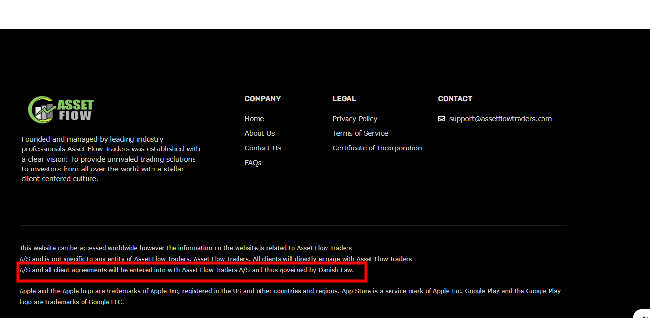 Asset Flow Traders claims to be a reliable company without presenting any information about its regulation or contact. The lack of such important information may be a distinct signal of an unlicensed broker, as regulated companies always present their accreditations and licenses in a prominent position. It is a red flag.