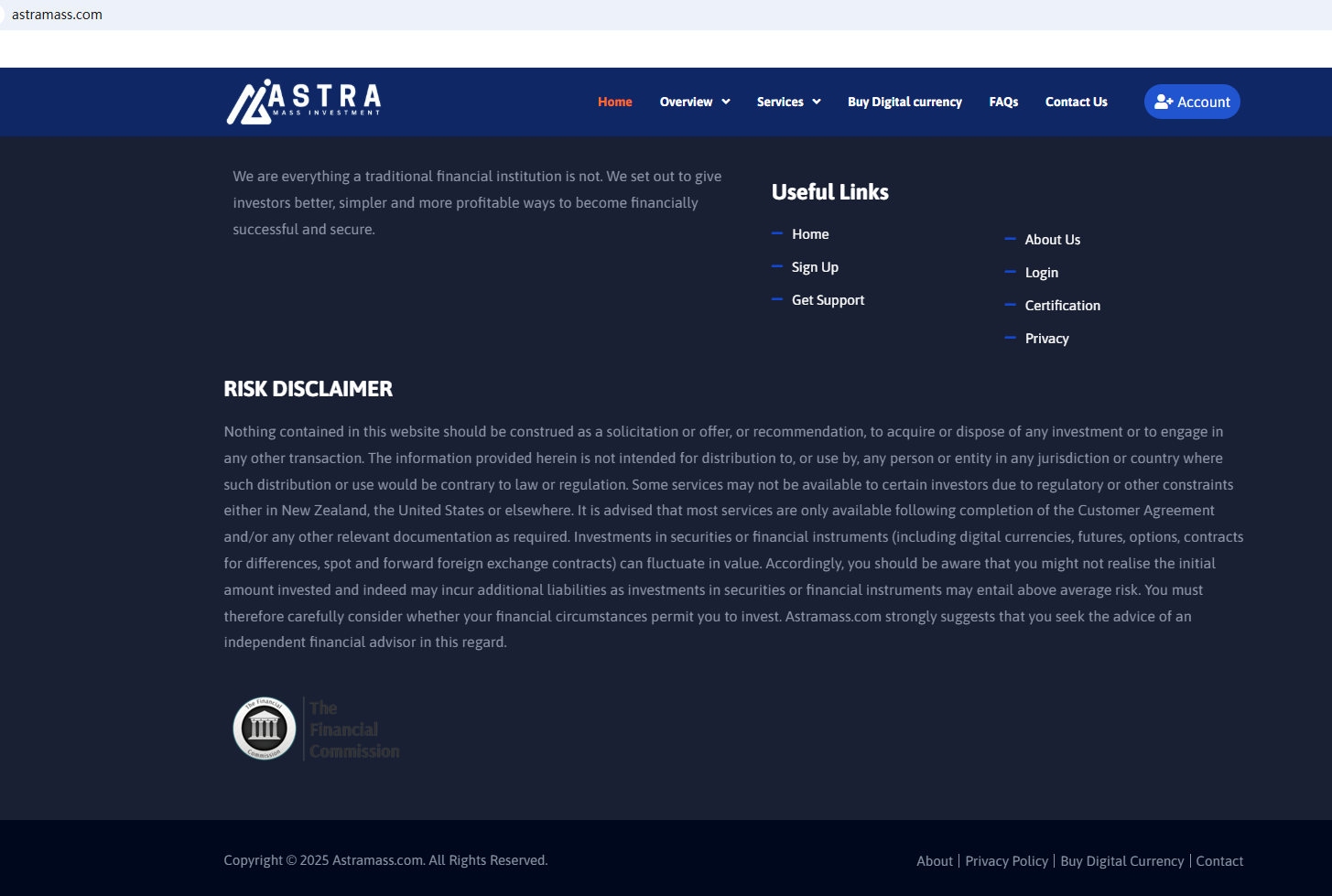 According to its website, it is located in the UK. Upon investigation, no matching information was found in the Financial Conduct Authority (FCA). In addition, the New Zealand Financial Markets Authority (NZ FMA) added Astramass to its warning list, stating that this is a fake investment platform.
