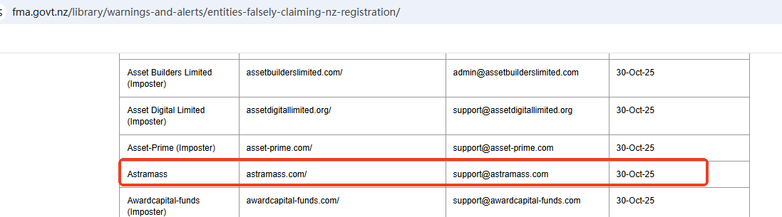 On Oct 30, 2025, the New Zealand Financial Markets Authority (NZ FMA) added Astramass to its warning list, stating that this is a fake investment platform. https://www.fma.govt.nz/library/warnings-and-alerts/entities-falsely-claiming-nz-registration/