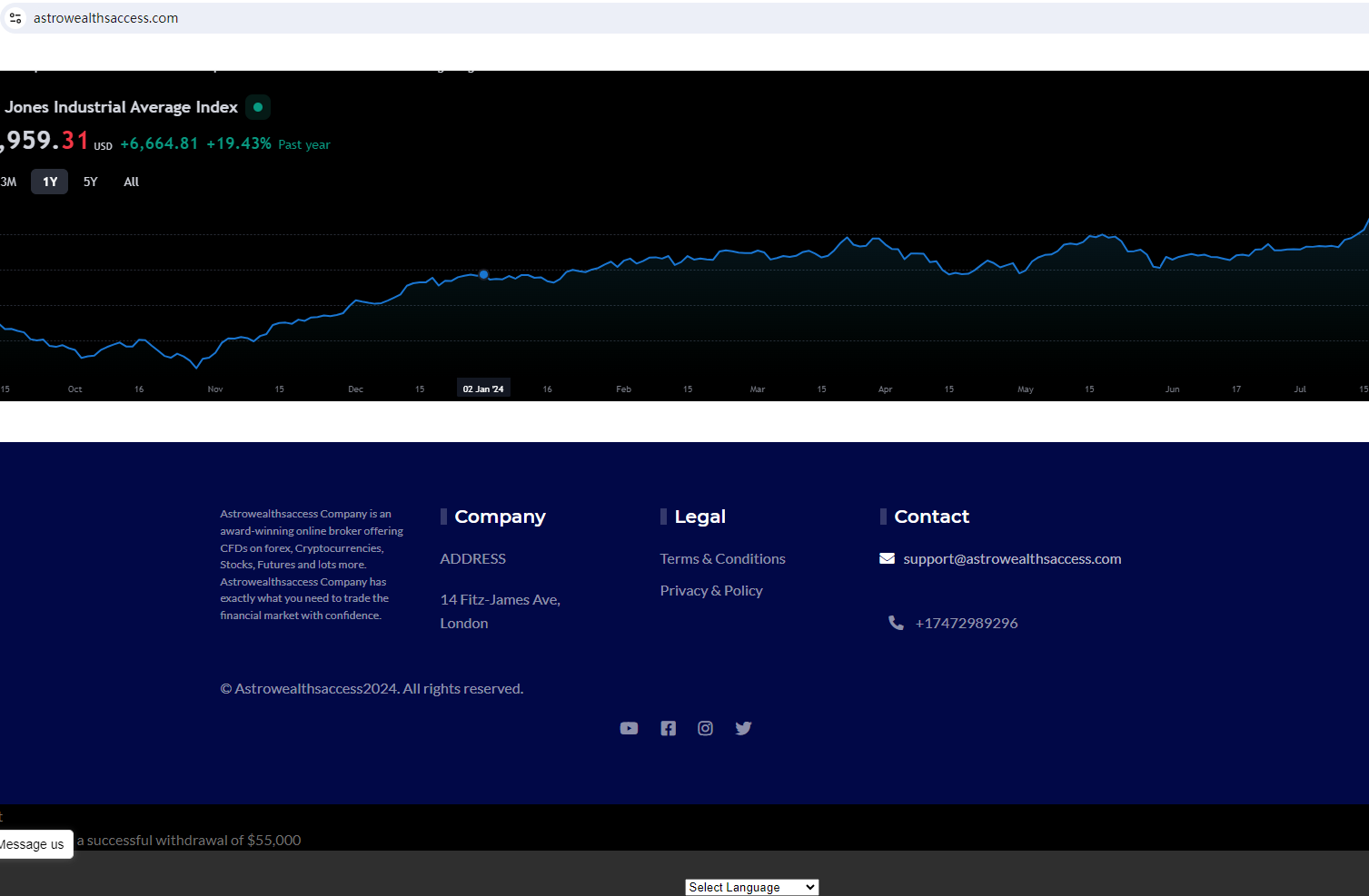BrokersView found that the domain "https://astrowealthsaccess.com/" is currently inaccessible. This is widely regarded as a significant red flag, as the suspension of a broker's website often points to underlying regulatory or operational issues.