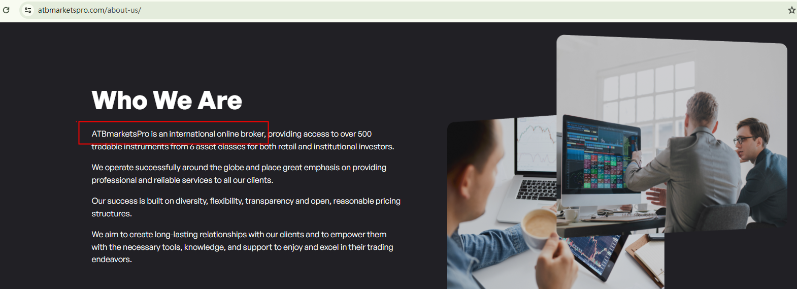 ATB Markets Pro presents itself as a leading online broker but fails to provide any information regarding its regulatory status. This lack of transparency is a red flag.