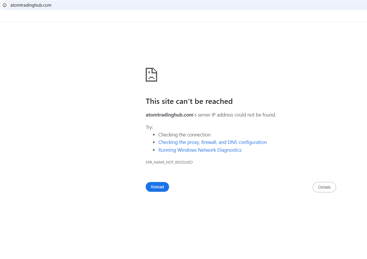 BrokersView found that the domain "https://atomtradinghub.com/" is currently inaccessible. This is widely regarded as a significant red flag, as the suspension of a broker's website often points to underlying regulatory or operational issues.