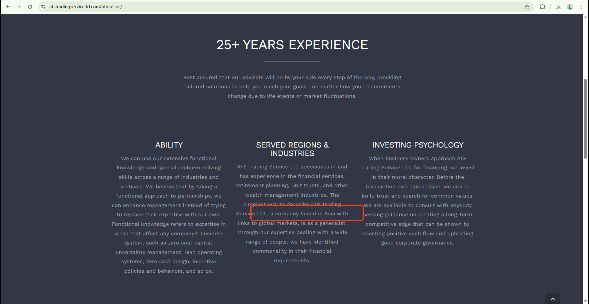 ATS Trading Service Limited fails to provide verified regulatory credentials. Its website only states it’s based in Asia, with no evidence of oversight from any financial authority.