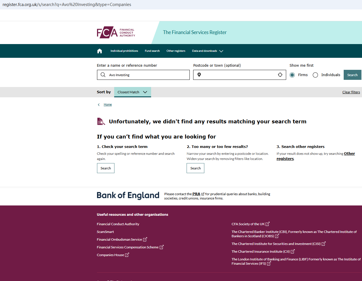 According to its website, it is located in the UK. Upon investigation, no matching information was found in the Financial Conduct Authority (FCA). In addition, the Finansinspektionen (FI) issued a warning against Avo Investing Ltd, suspecting that it is not a real company.