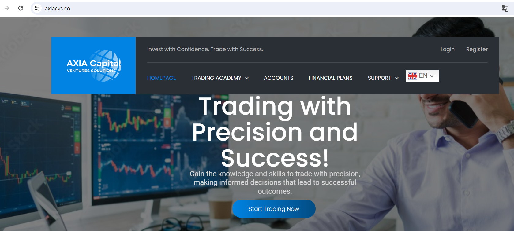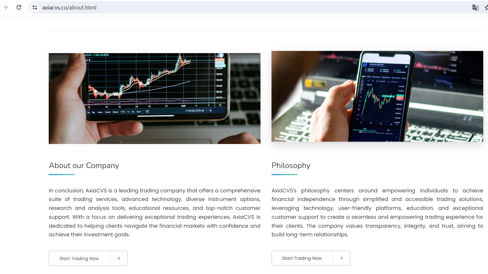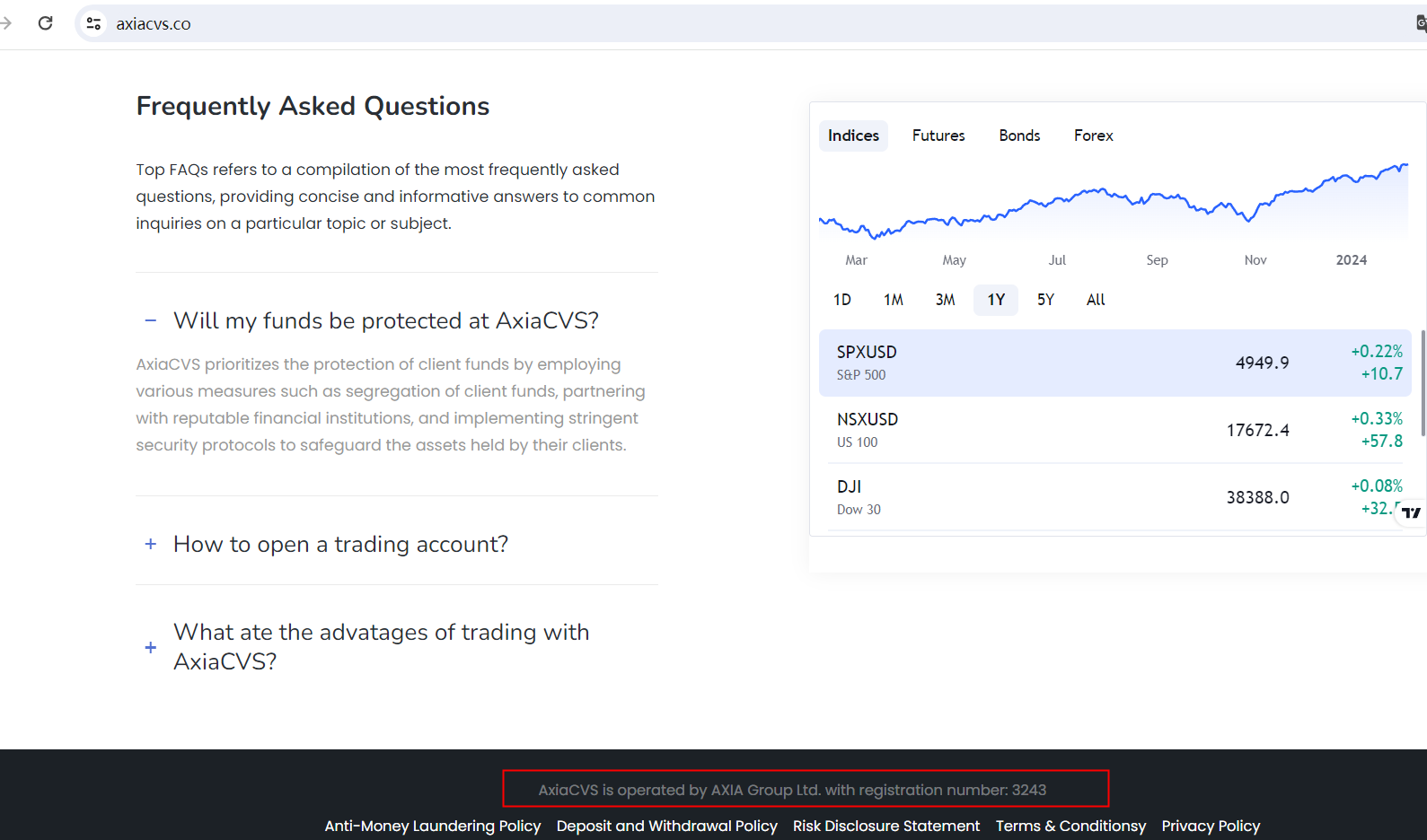 BrokersView found that the domain "https://www.axiacvs.co/" is currently inaccessible. This is widely regarded as a significant red flag, as the suspension of a broker's website often points to underlying regulatory or operational issues.
