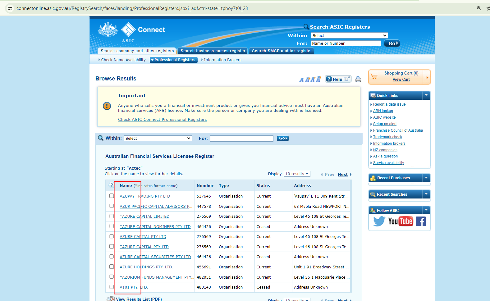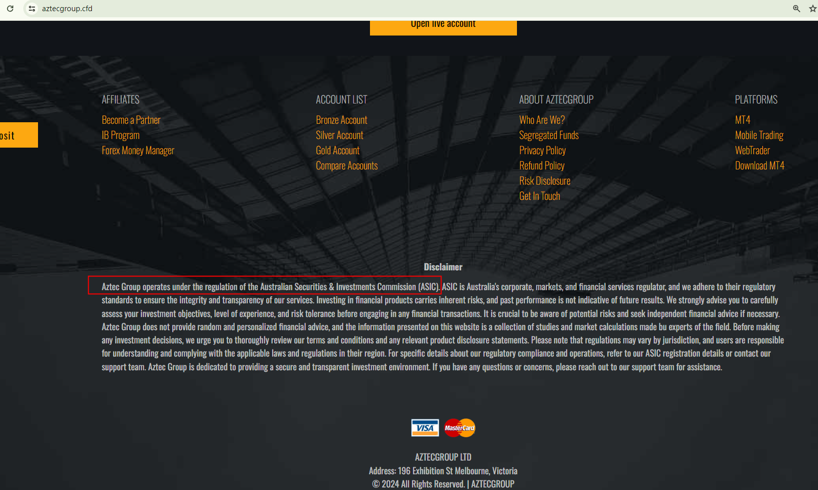 The Aztec Group purports to be regulated by the Australian Securities and Investments Commission (ASIC). However, our investigation indicates a different reality.