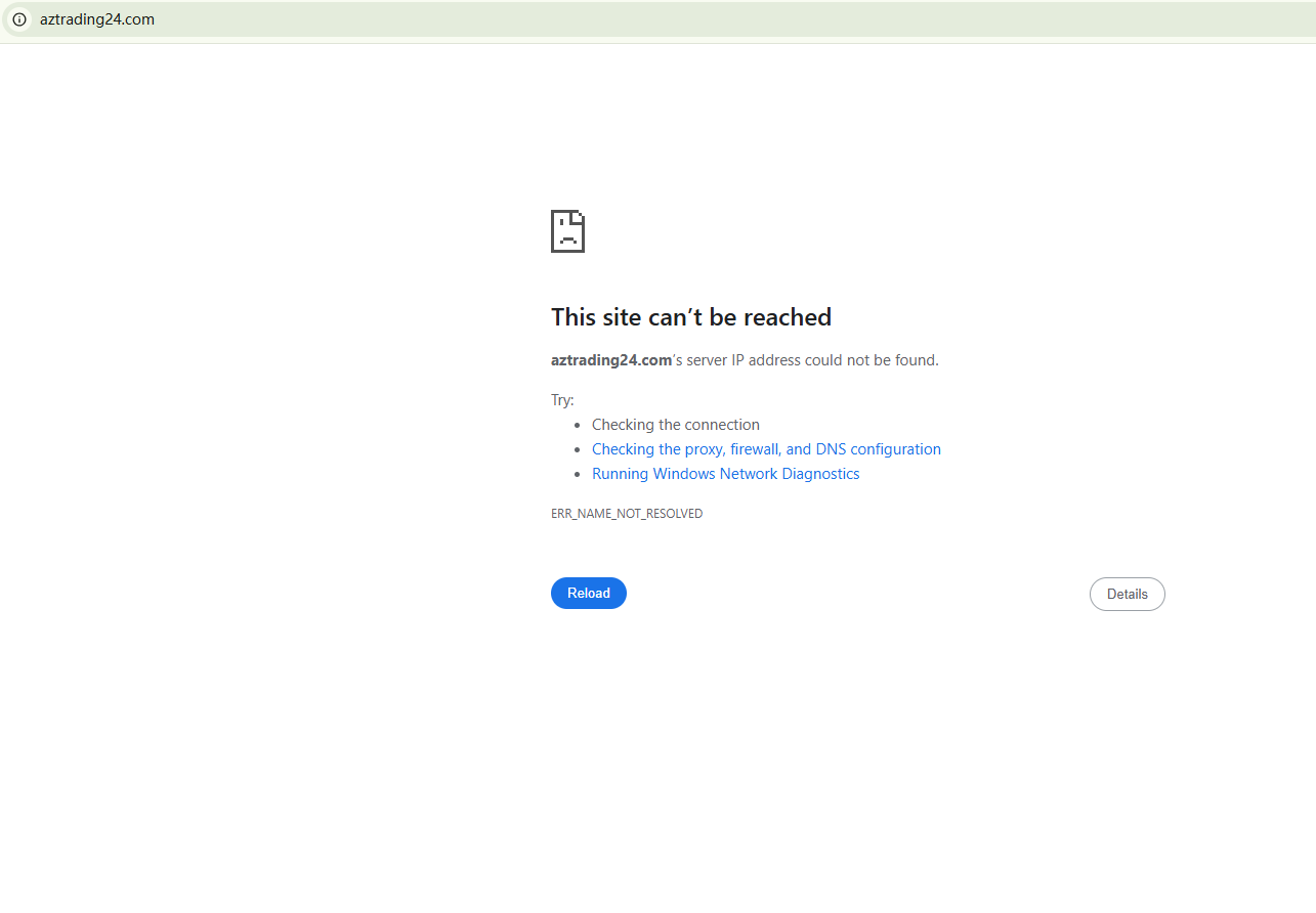 BrokersView found that the domain "https://aztrading24.com/" is currently inaccessible. This is widely regarded as a significant red flag, as the suspension of a broker's website often points to underlying regulatory or operational issues.