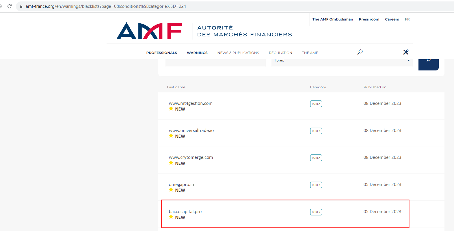 On 5 December 2023, the Autorité des Marchés Financiers (AMF) issued a warning that Bacco Capital was providing financial services or products without authorisation. You may visit: https://www.amf-france.org/en/warnings/blacklists?page=0&conditions%5Bcategorie%5D=224