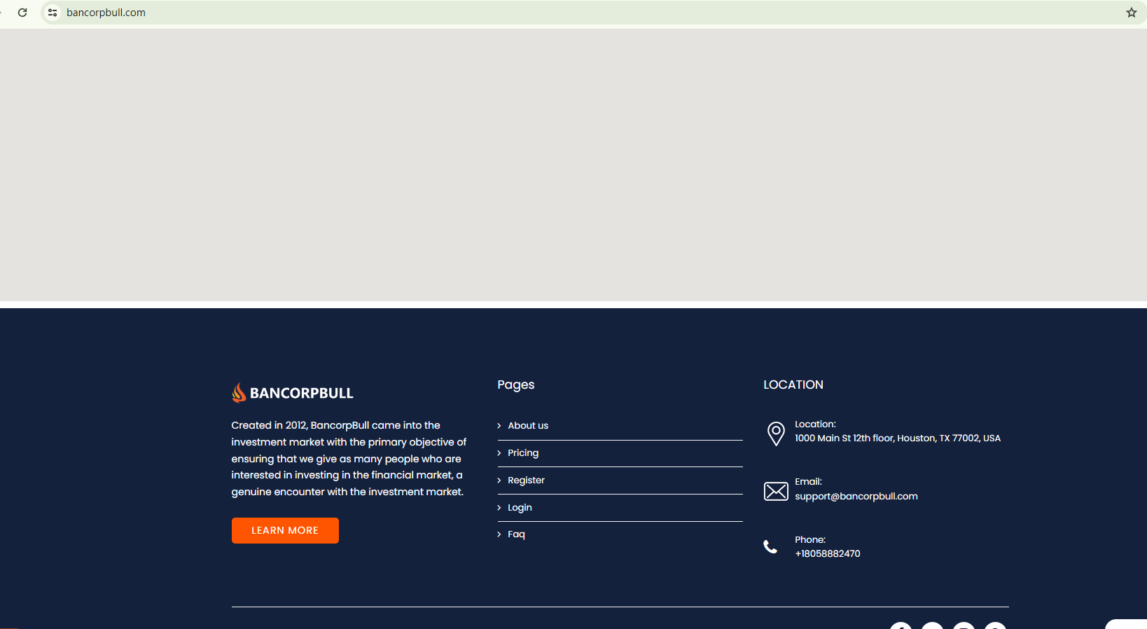 The website of BancorpBull appears to be identical to that of Fxmarkettrade, an unregulated broker that has previously been flagged by BrokersView. Intriguingly, they even share the same alleged physical address, which raises questions about their authenticity.
