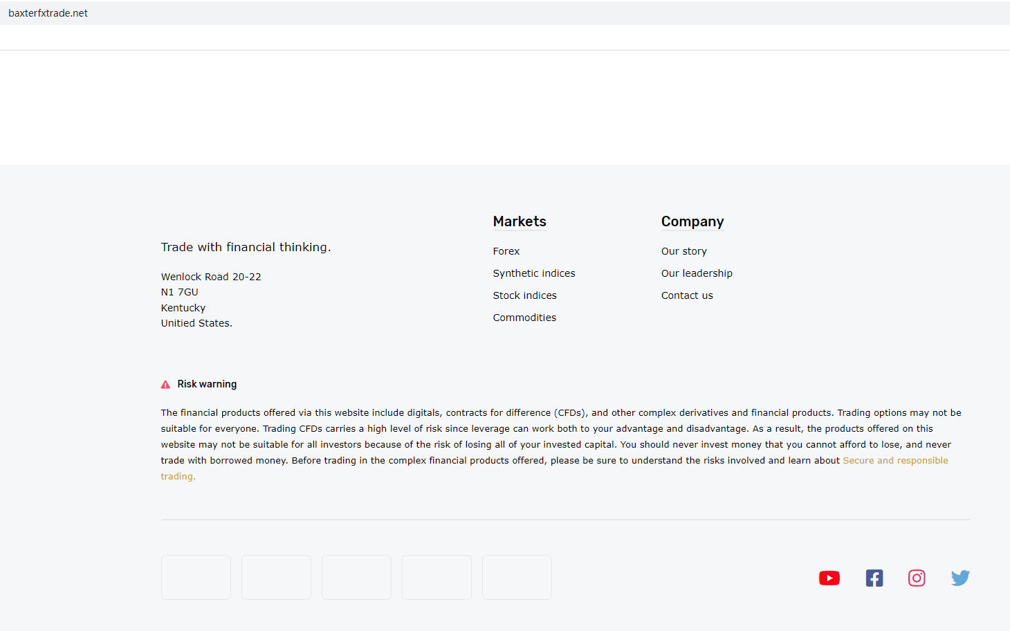 BrokersView found that the domain "baxterfxtrade.net" is currently inaccessible. This is widely regarded as a significant red flag, as the suspension of a broker's website often points to underlying regulatory or operational issues.