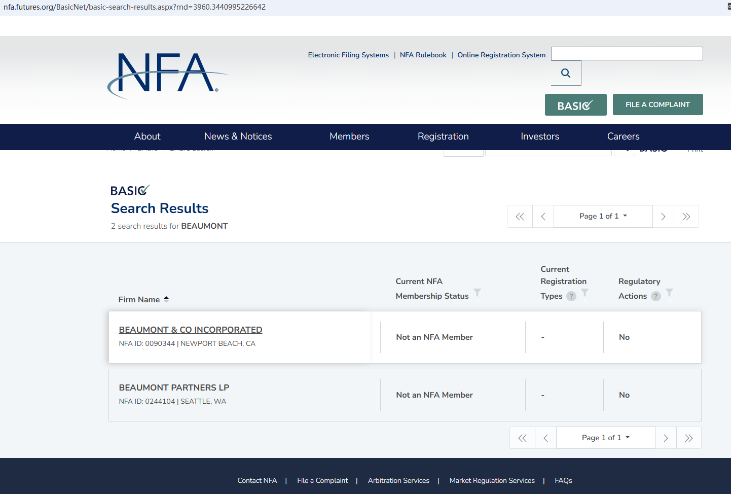 In essence, BEAUMONT is not regulated by any governing body. Entrusting it with investors' funds is highly risky, as there are no legal protections in place to safeguard the funds. BEAUMONT appears to be a scam.