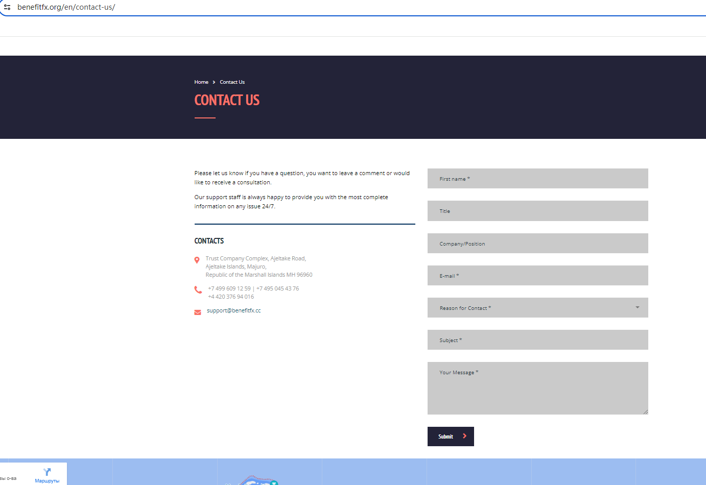 BrokersView found that the domain "https://benefitfx.org/" is currently inaccessible. This is widely regarded as a significant red flag, as the suspension of a broker's website often points to underlying regulatory or operational issues.