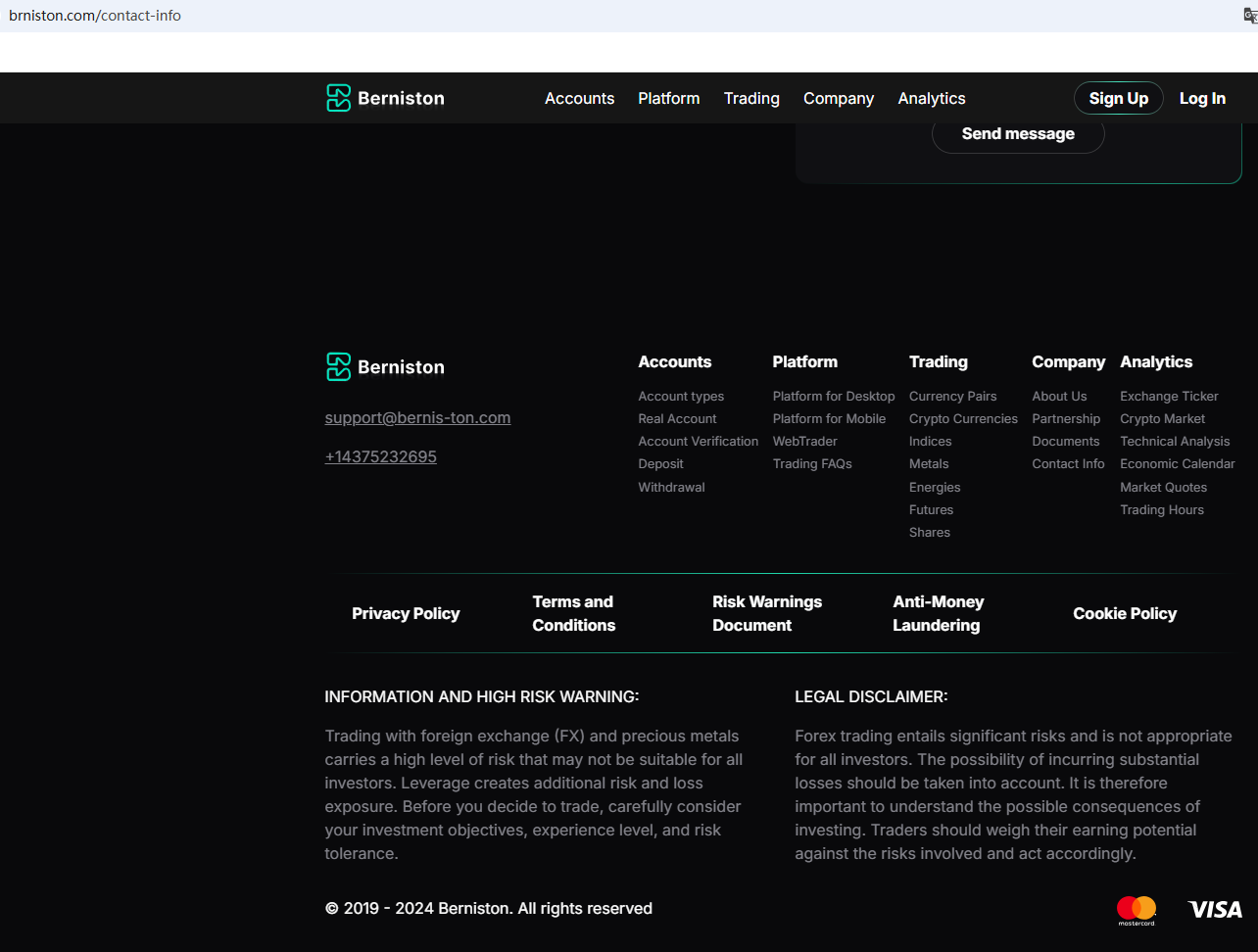 Berniston aka Berniston Investments appears to be a scam.