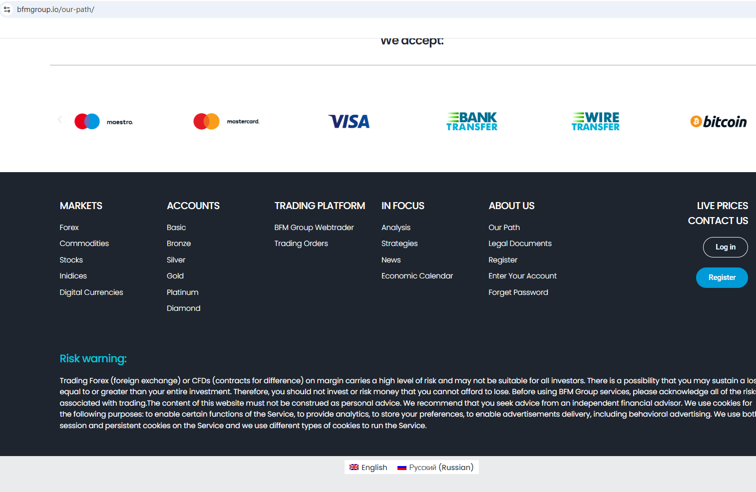 BrokersView found that the domain "https://bfmgroup.io/" is currently inaccessible. This is widely regarded as a significant red flag, as the suspension of a broker's website often points to underlying regulatory or operational issues.