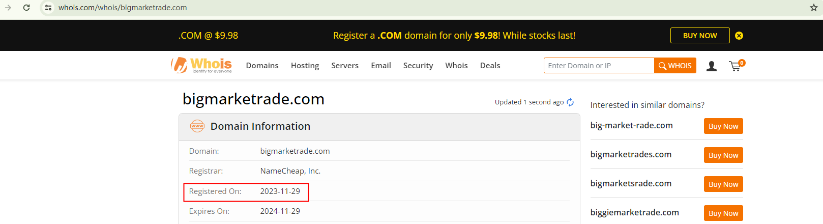 Big Market Trade claims to be founded 2013, but its domain name, bigmarketrade.com, was recently registered in late November 2023. This significant discrepancy is a red flag, suggesting issues with the broker's credibility.