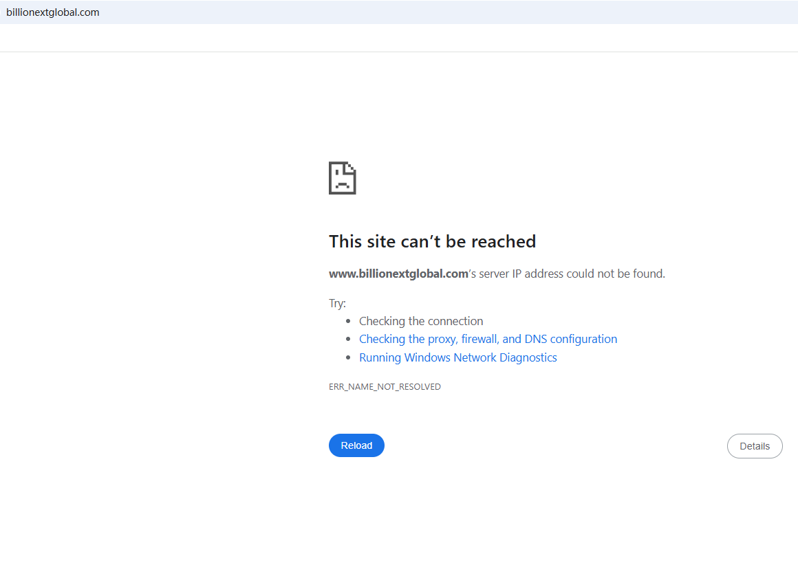 BrokersView found that the domain "http://www.billionextglobal.com/" is currently inaccessible. This is widely regarded as a significant red flag, as the suspension of a broker's website often points to underlying regulatory or operational issues.