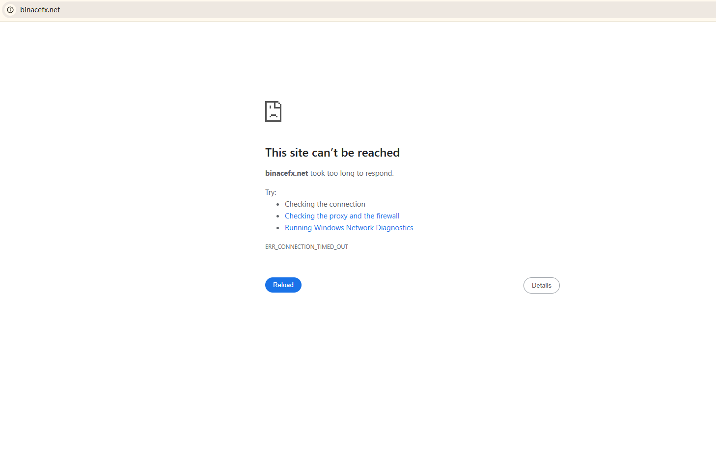 BrokersView found that the domain "https://binacefx.net/" is currently inaccessible. This is widely regarded as a significant red flag, as the suspension of a broker's website often points to underlying regulatory or operational issues.