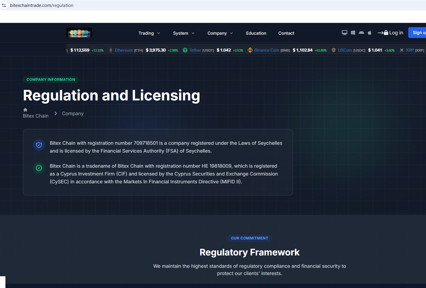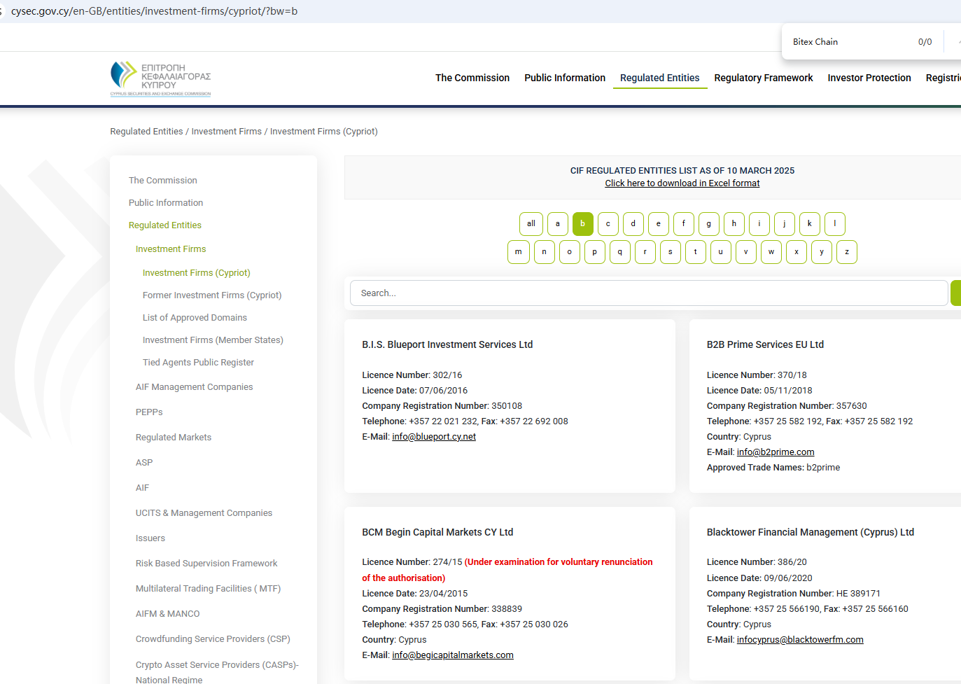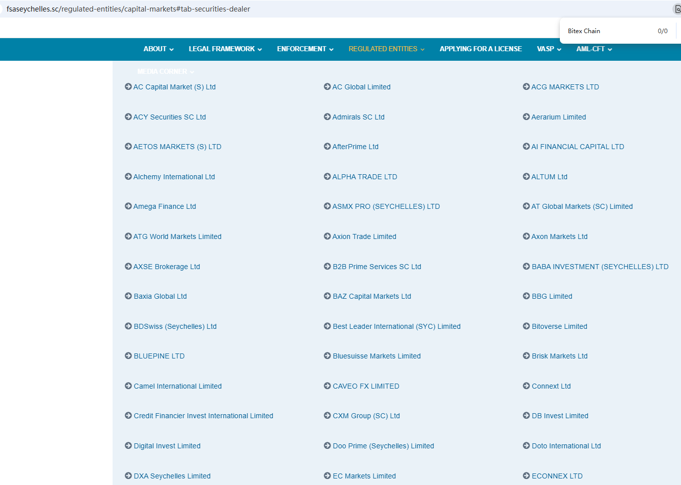 According to its website, it claims to be regulated by the Seychelles Financial Services Authority (Seychelles FSA) and the Cyprus Securities and Exchange Commission (CySEC). Upon investigation, no matching information was found in the Seychelles FSA and CySEC. In addition, the Financial Conduct Authority (FCA) issued a warning regarding Bitex Chain, suspecting that this company may be offering financial services or products without the necessary authorization.