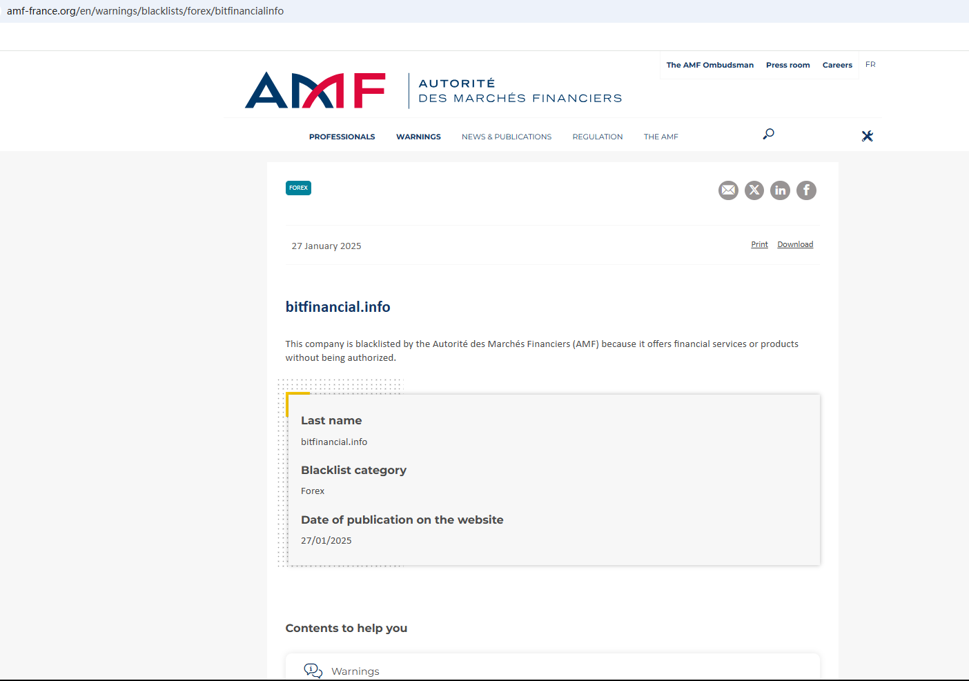In addition, the Financial Authority (Autorité des Marchés Financiers, AMF) added BitFinancial to warning list for it being an unauthorized company engaging in forex activities.