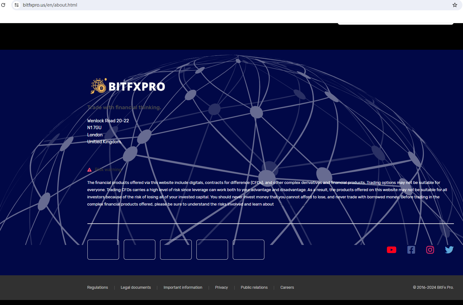 In addition, the United Kingdom Financial Conduct Authority (UK FCA) issued a warning that bitfxpro.us was providing financial services or products in the UK without authorisation.