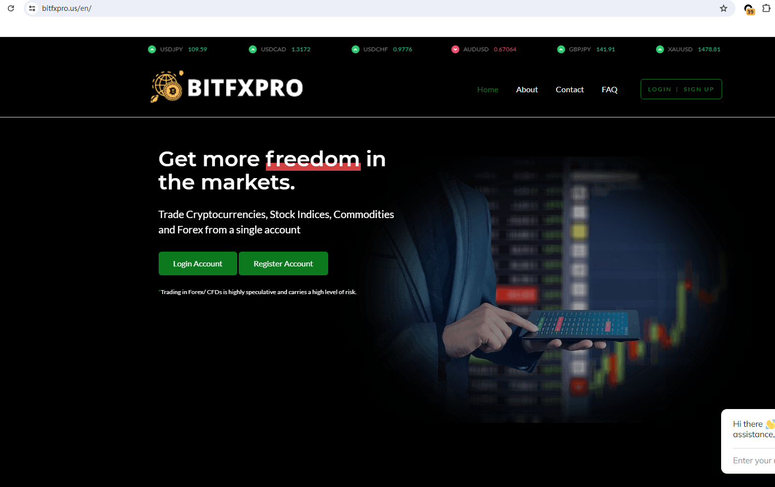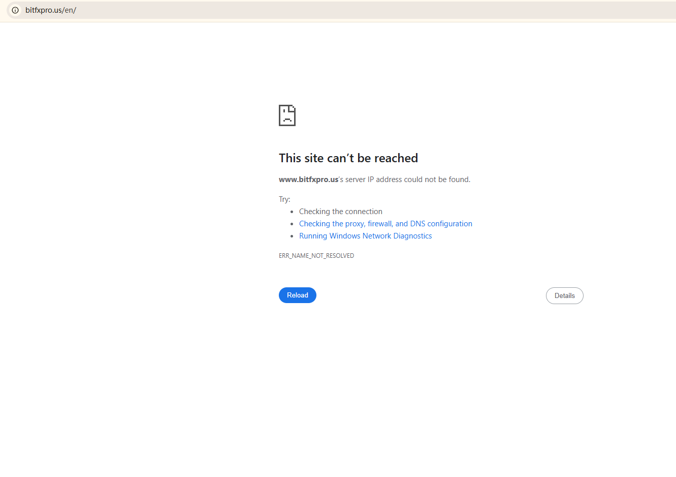 BrokersView found that the domain "https://www.bitfxpro.us/en/" is currently inaccessible. This is widely regarded as a significant red flag, as the suspension of a broker's website often points to underlying regulatory or operational issues.