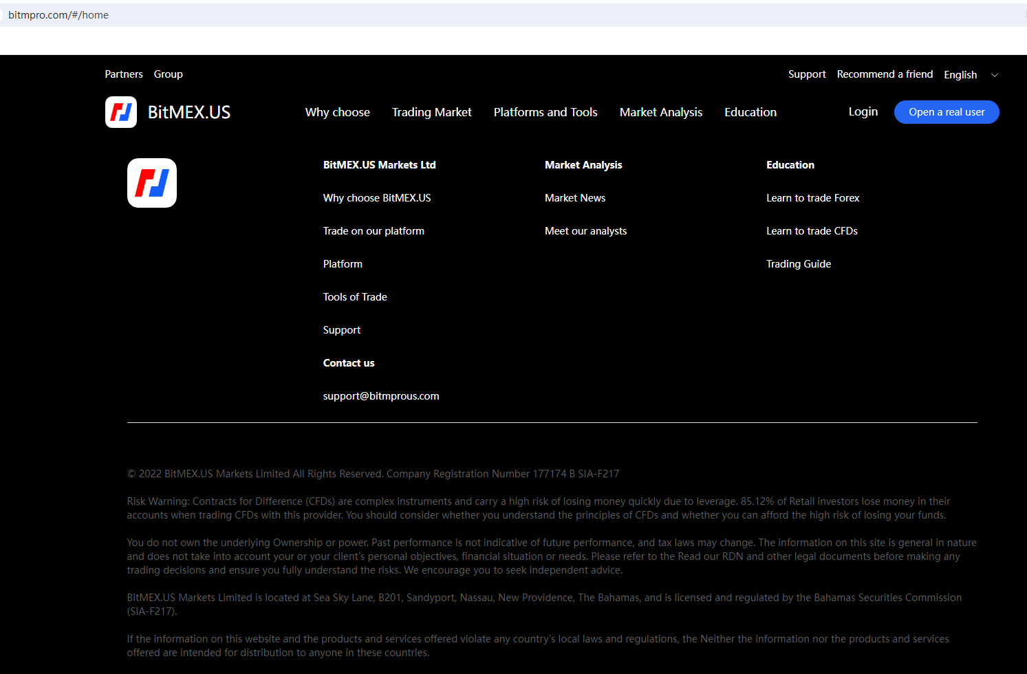 According to its website, it claims regulated by the Bahamas Securities Commission. Upon investigation, we found that the Securities Commission of The Bahamas (SCB) issued a warning against BitMEX.US Markets Limited, believing this company might be providing financial services or products without authorisation.