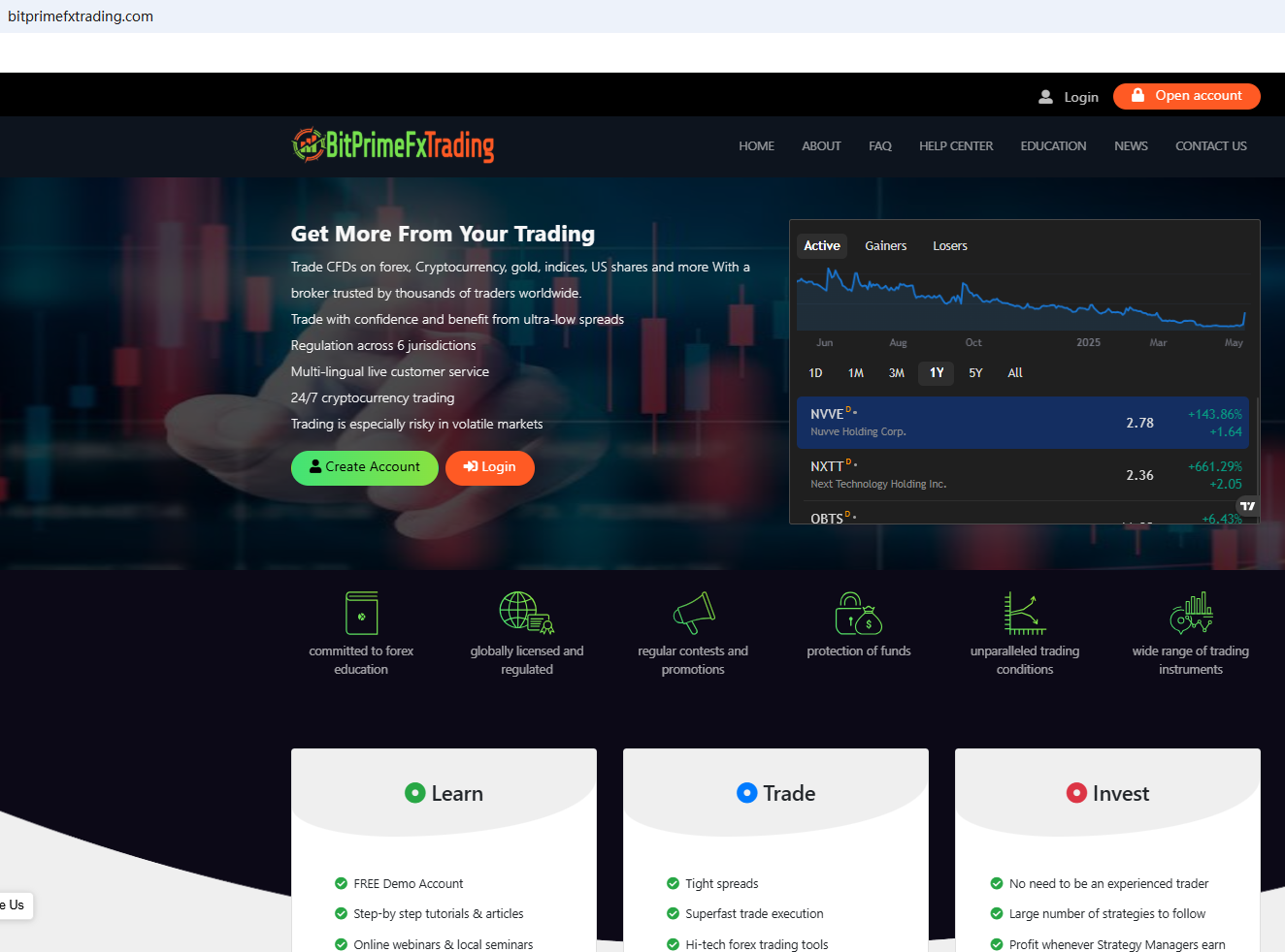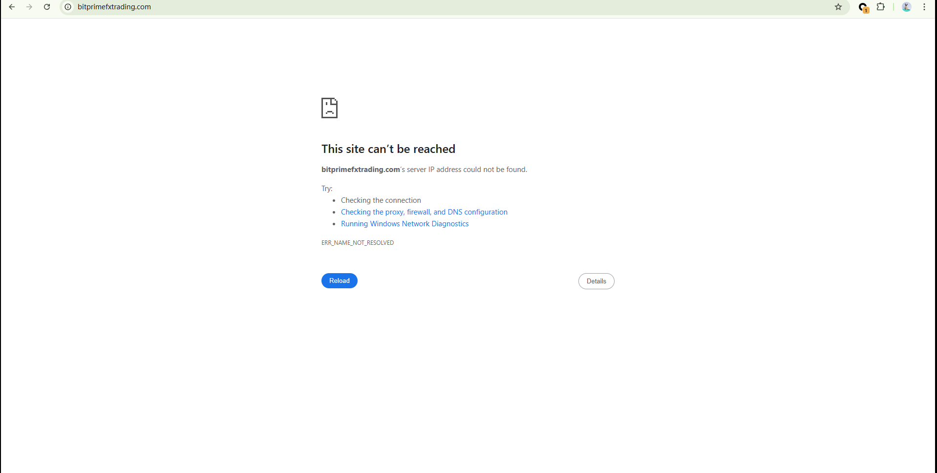 BrokersView found that the domain "https://bitprimefxtrading.com/" is currently inaccessible. This is widely regarded as a significant red flag, as the suspension of a broker's website often points to underlying regulatory or operational issues.