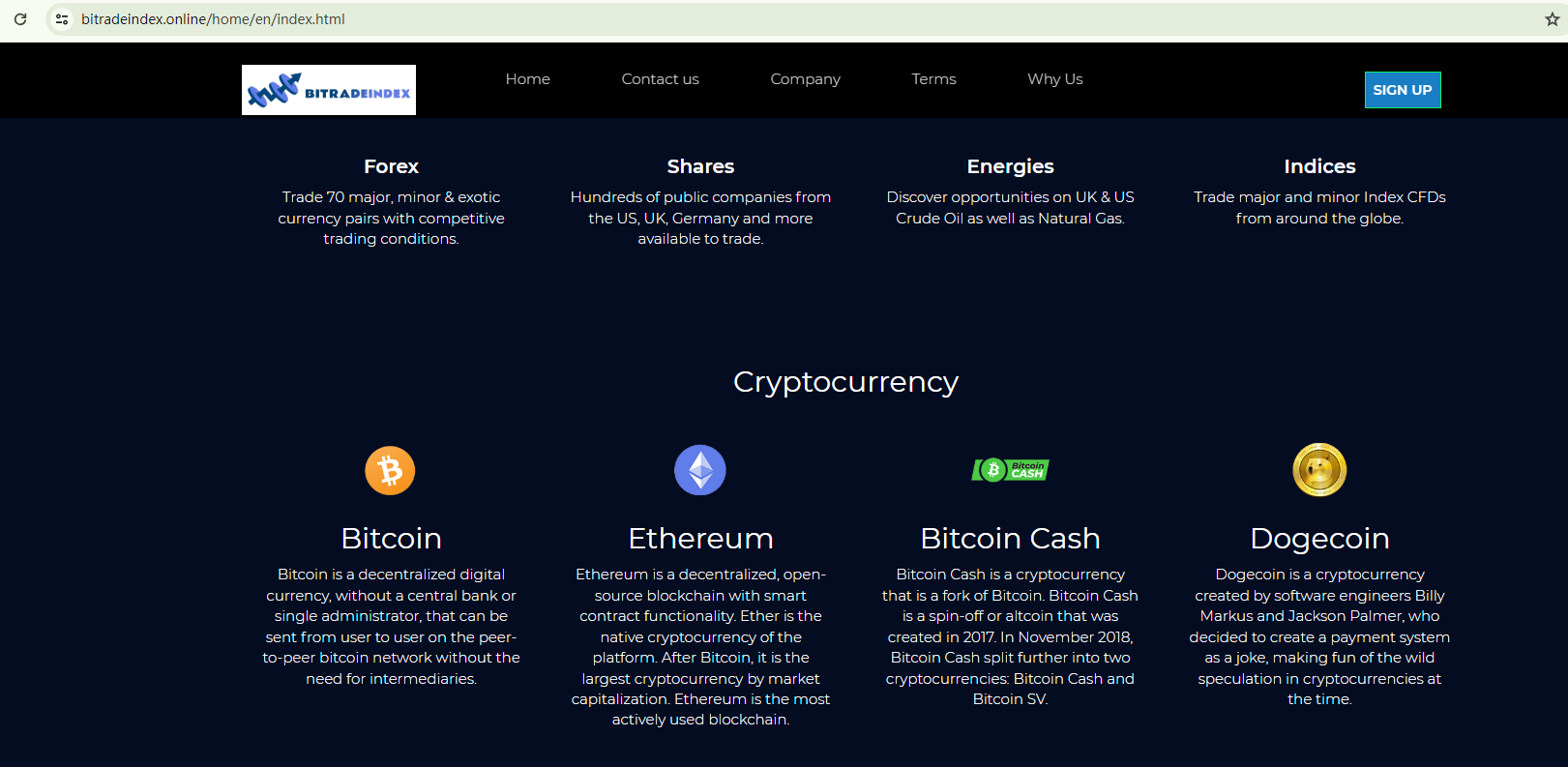 BrokersView found that the domain "bitradeindex.online" is currently inaccessible. This is widely regarded as a significant red flag, as the suspension of a broker's website often points to underlying regulatory or operational issues.