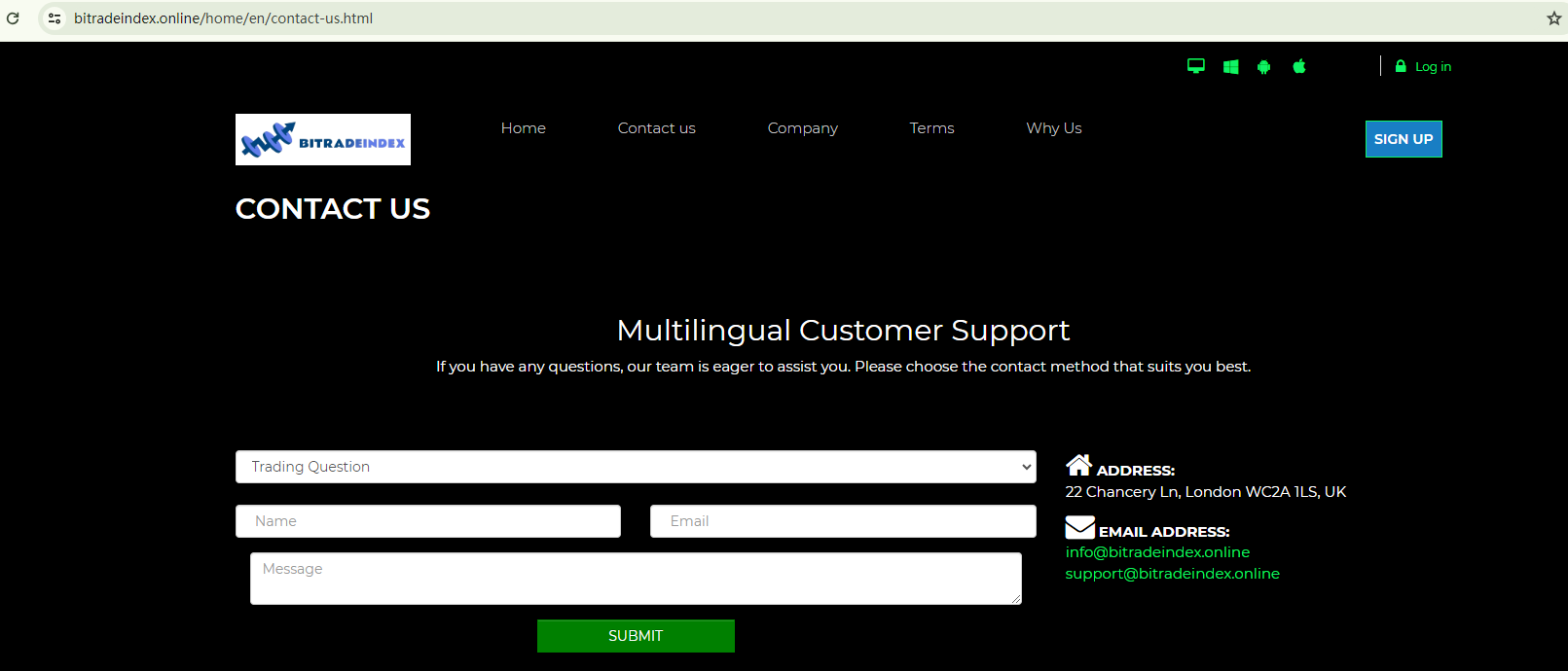 Furthermore, despite its assertion of being domiciled in the UK, the Financial Conduct Authority (FCA) has issued a warning, identifying BITRADEINDEX as an unauthorized firm in the country. This indicates that it is operating in an unregulated environment.