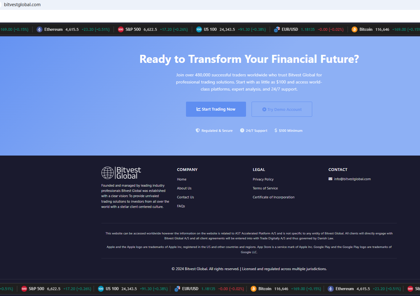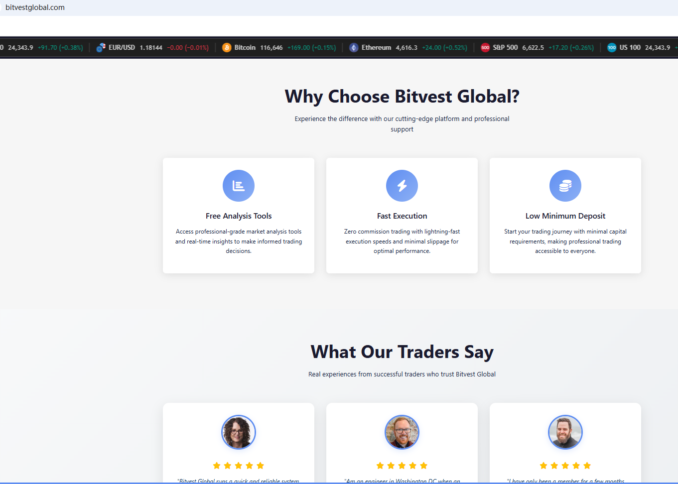 Bitvest Global is unregulated, offering no legal protections for investors' funds. Bitvest Global seems to be a scam.