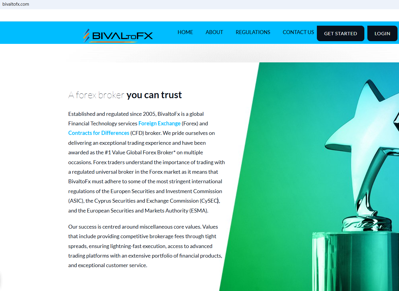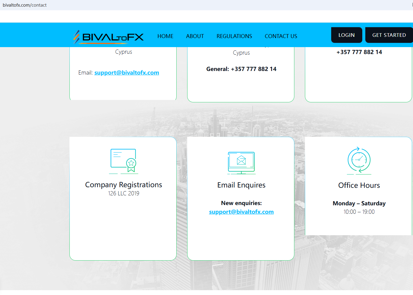 According to its website, it claims to comply with Australia Securities & Investment Commission (ASIC) and European Securities and Markets Authority (ESMA) regulations and is registered with Cyprus Securities and Exchange Commission (CySEC). It also provides a regulatory number of 126 LLC 2019 on the website, which is the regulatory number of SVG FSA. Upon investigation, no matching information was found in ASIC and ESMA. The information on file we found in SVG FSA is inconsistent with BivaltoFx. It is obvious that BivaltoFx has stolen the regulatory information of compliant brokers, which is very unreliable.