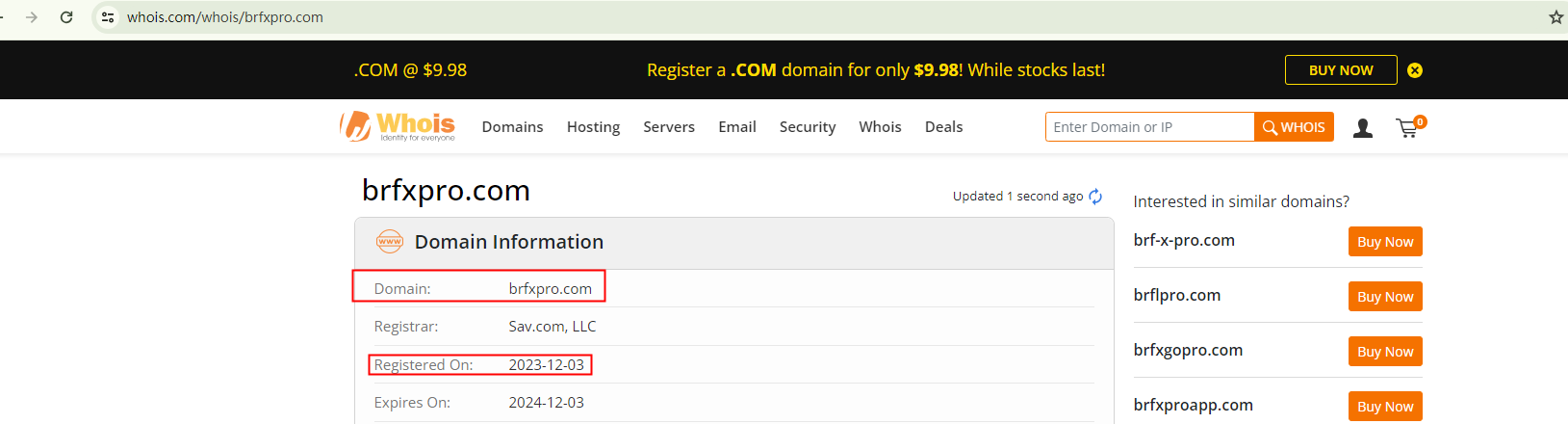 The company claims to have been in the market for over five years. However, its domain name, brfxpro.com, was only registered in December 2023. This discrepancy between the website's age and its claimed history is another warning sign.