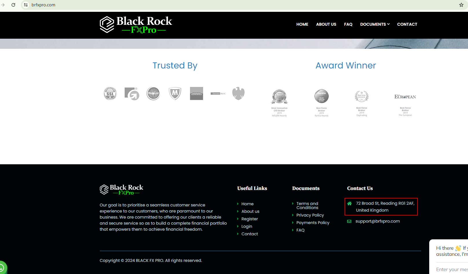 BLACKROCK FX PRO asserts to be licensed, yet it does not provide any specific regulatory information for transparency or verification by investors. This lack of transparency raises a red flag for potential fraudulent activities.