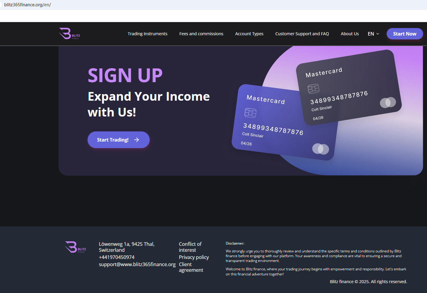 According to its website, its office is located in Switzerland, and ironically, we found that the Swiss Financial Market Supervisory Authority (FINMA) issued a warning against Blitz finance, stating that this broker is not entered in its commercial register.