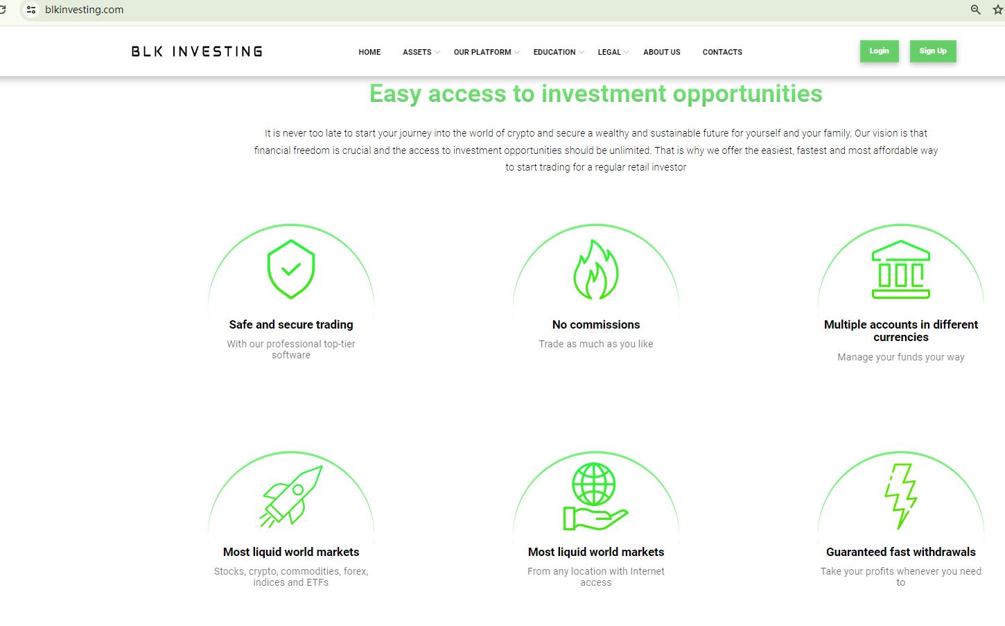 While BLK Investing claims to be a premier broker, it fails to provide the necessary licensing data or company profiles for investors to do due diligence. This lack of transparency is a significant scam indictor.