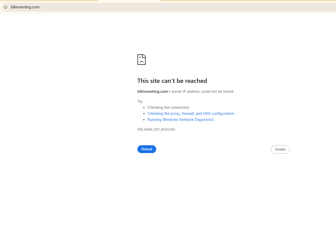 BrokersView found that the domain "https://blkinvesting.com/" is currently inaccessible. This is widely regarded as a significant red flag, as the suspension of a broker's website often points to underlying regulatory or operational issues.