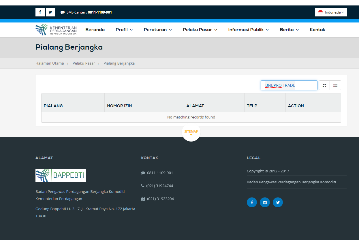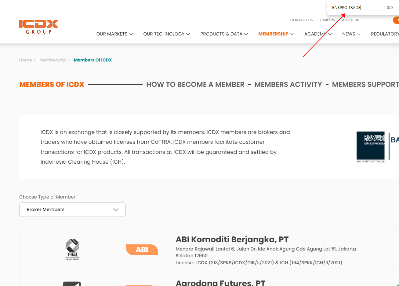 According to its website, BNBPRO TRADE located in Jakarta. After inquiries from relevant agencies, there is no matiching information was found in Indonesian Commodity Futures Trading Regulatory Agency (BAPPEBTI), Bursa Berjangka Komoditi & Derivatif (ICDX) and Otoritas Jasa Keuangan (OJK)