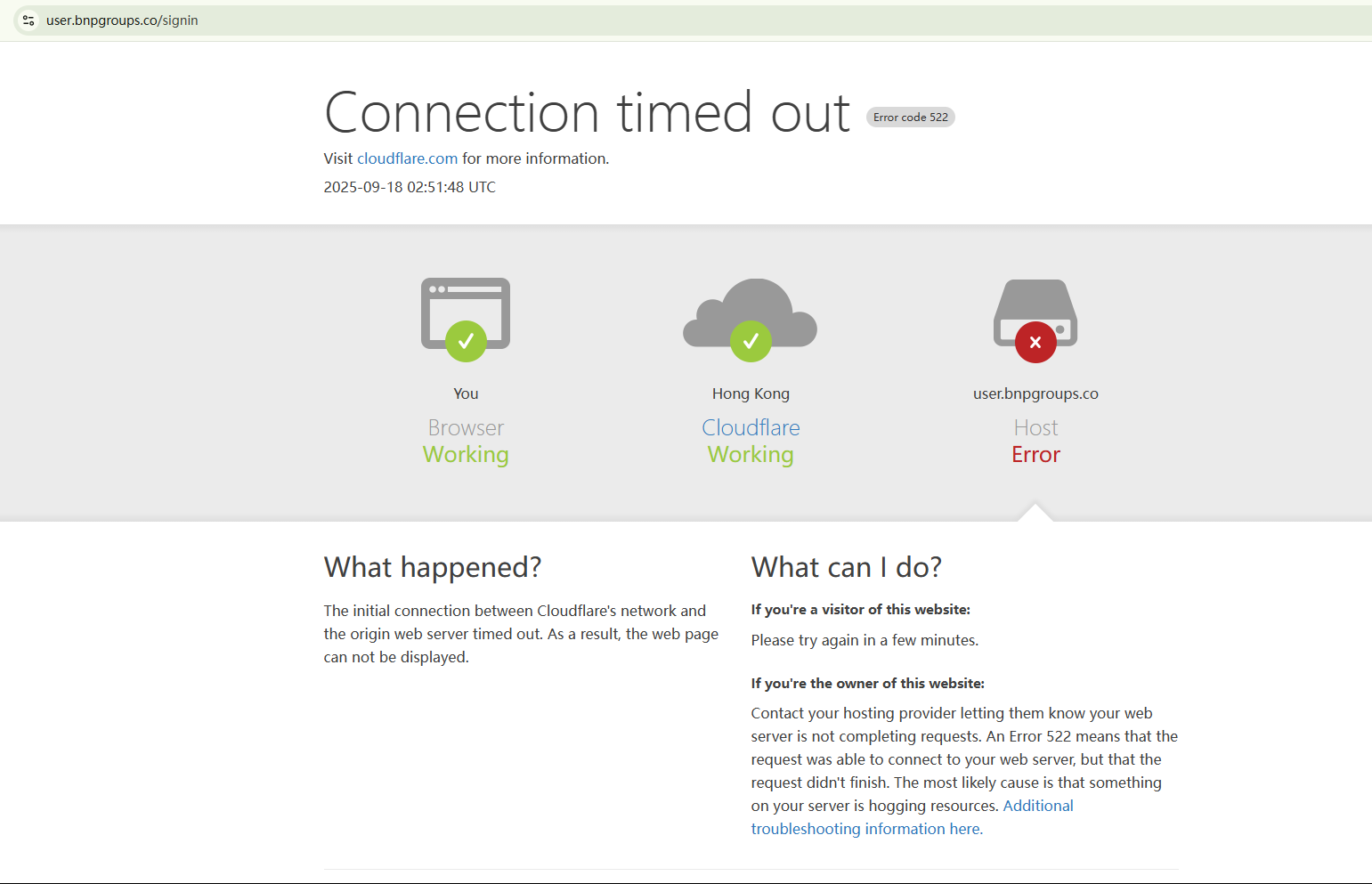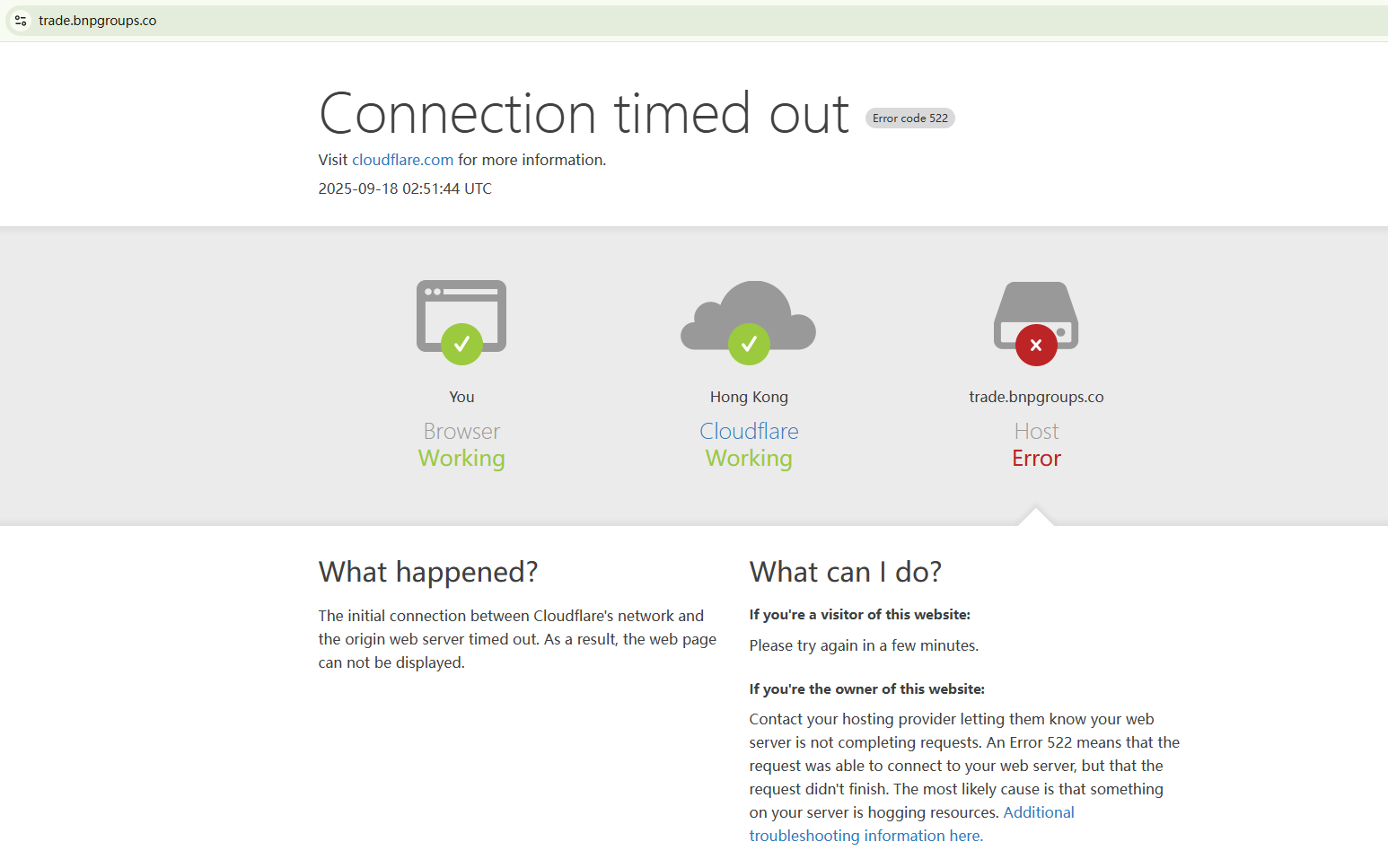 BrokersView found that the domain "https://bnpgroups.co.uk/;https://trade.bnpgroups.co/;https://user.bnpgroups.co/signin" are currently inaccessible. This is widely regarded as a significant red flag, as the suspension of a broker's website often points to underlying regulatory or operational issues.