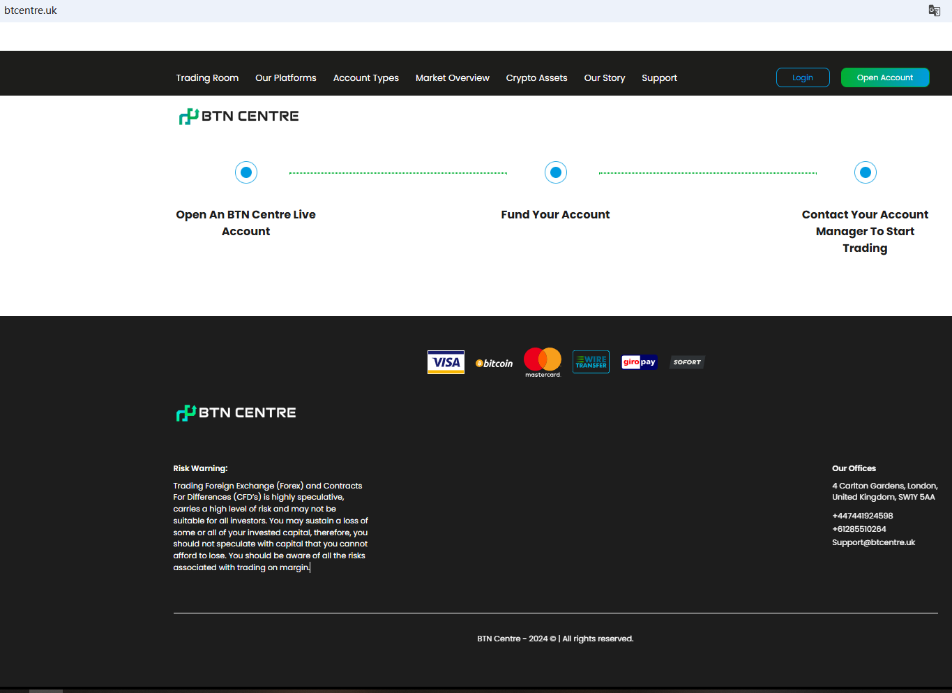 BrokersView found that the domain "https://btcentre.uk/" is currently inaccessible. This is widely regarded as a significant red flag, as the suspension of a broker's website often points to underlying regulatory or operational issues.
