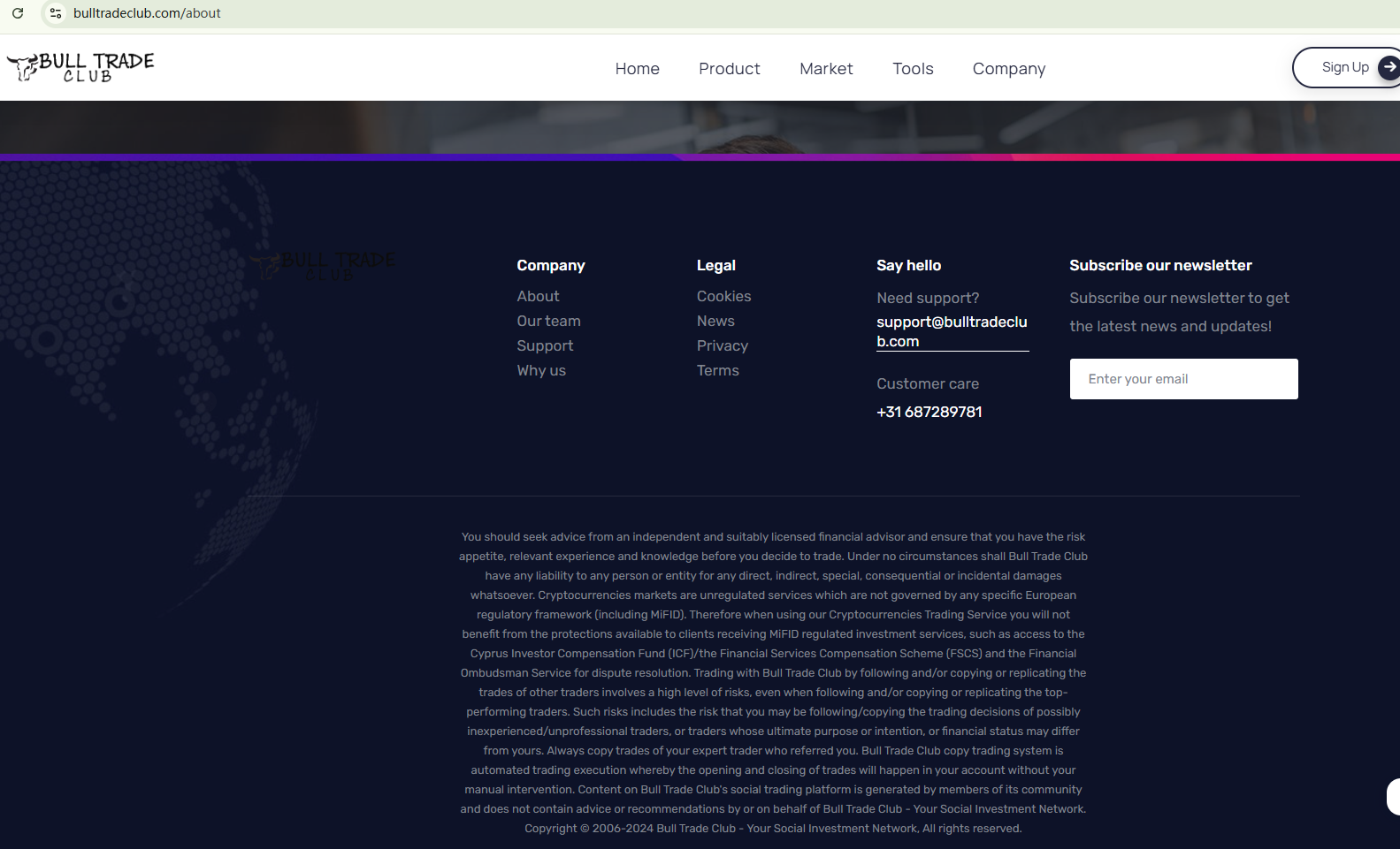 Despite boasting to be a reliable and reputable broker, BULL TRADE CLUB fails to provide any valid information to substantiate its claims and support its reputation. In addition, the firm doesn't disclose any details about their legal forms, a lack of transparency raising significant concerns. Additionally, the Comisión Nacional del Mercado de Valores (CNMV) has added BULL TRADE CLUB to its warning list for providing investment services without authorization.