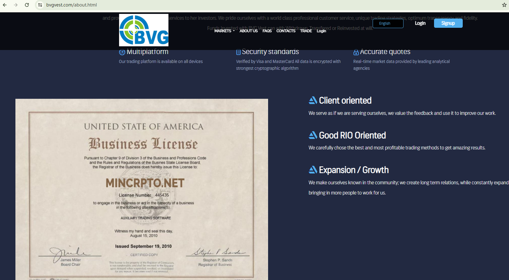 BVG Vest's website provides scant information and lacks valid licensing data, which is considered a red flag for potential fraudulent activities.