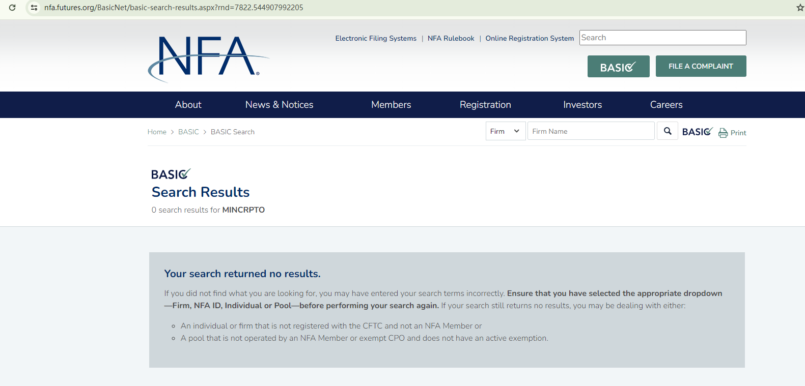 On its About page, this entity showcases a business license with company name Mincrpto.net, implying that it is registered in the US. For it to be legitimate in this country, it is required to be registered as a member of the National Futures Association (NFA). However, our search for it in the NFA register didn't return any matching records. Below the claimed license is a "View Broker Licence" button linked to an unknown certificate that appears to be issued by a nonexistent regulatory body.