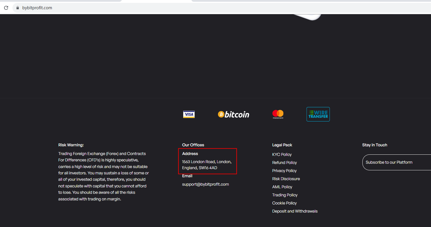 ByBitProfit claims to be a reliable company without presenting any information about its regulation, it locates in the U.K, but we don't find any information on U.K Financial Conduct Authority (FCA) matching to ByBitProfit. It is a red flag.