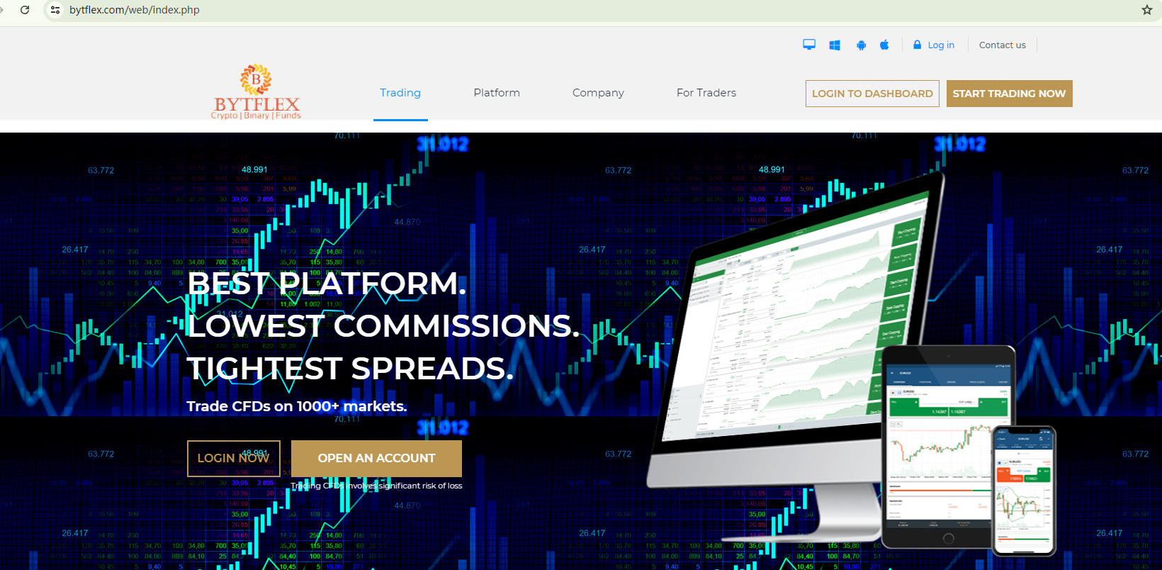 BrokersView found that the domain "https://bytflex.com/web/index.php" is currently inaccessible. This is widely regarded as a significant red flag, as the suspension of a broker's website often points to underlying regulatory or operational issues.