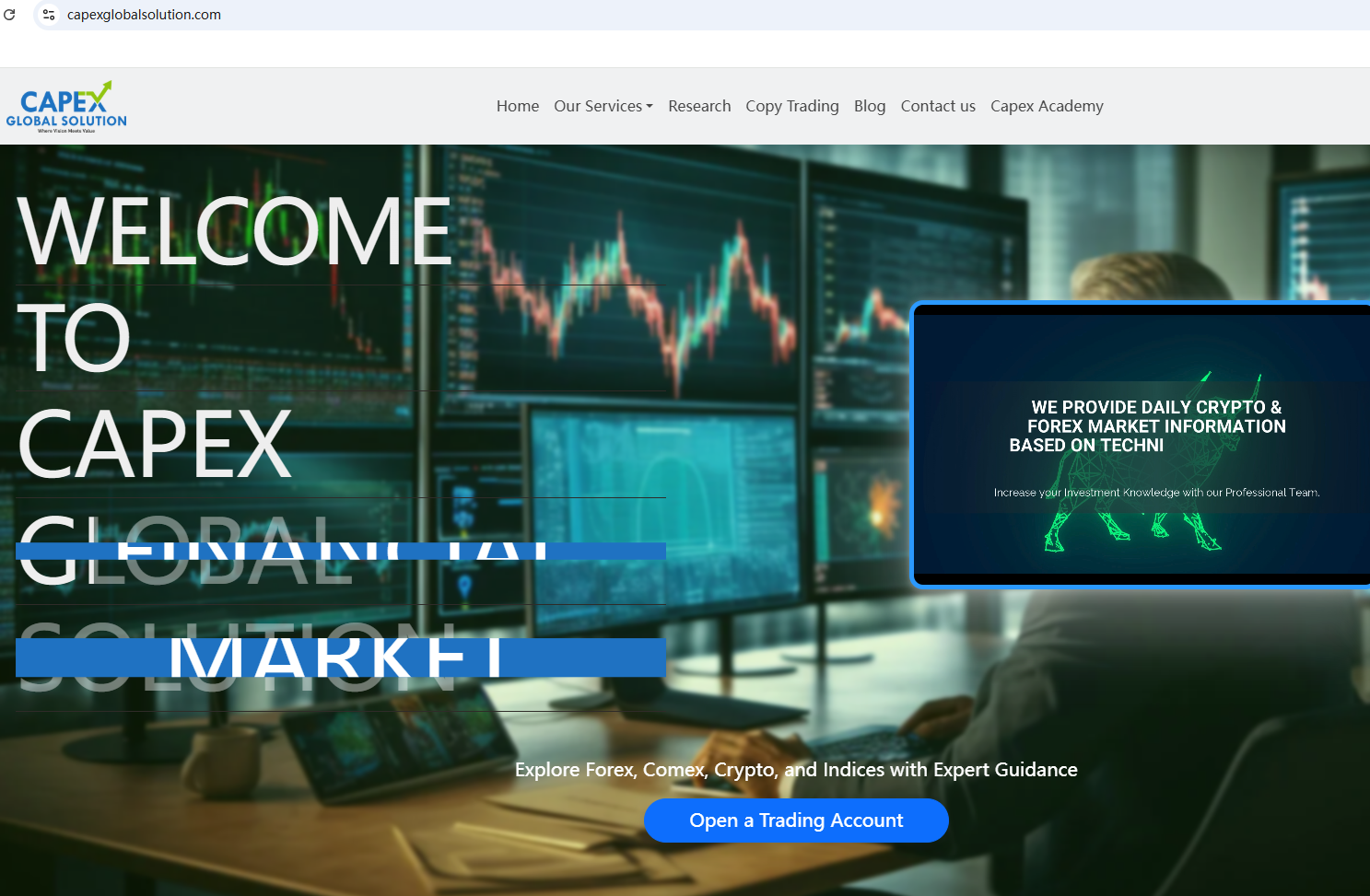 In essence, CAPEX GLOBAL SOLUTION is not regulated by any governing body. Entrusting it with investors' funds is highly risky, as there are no legal protections in place to safeguard the funds. CAPEX GLOBAL SOLUTION appears to be a scam.