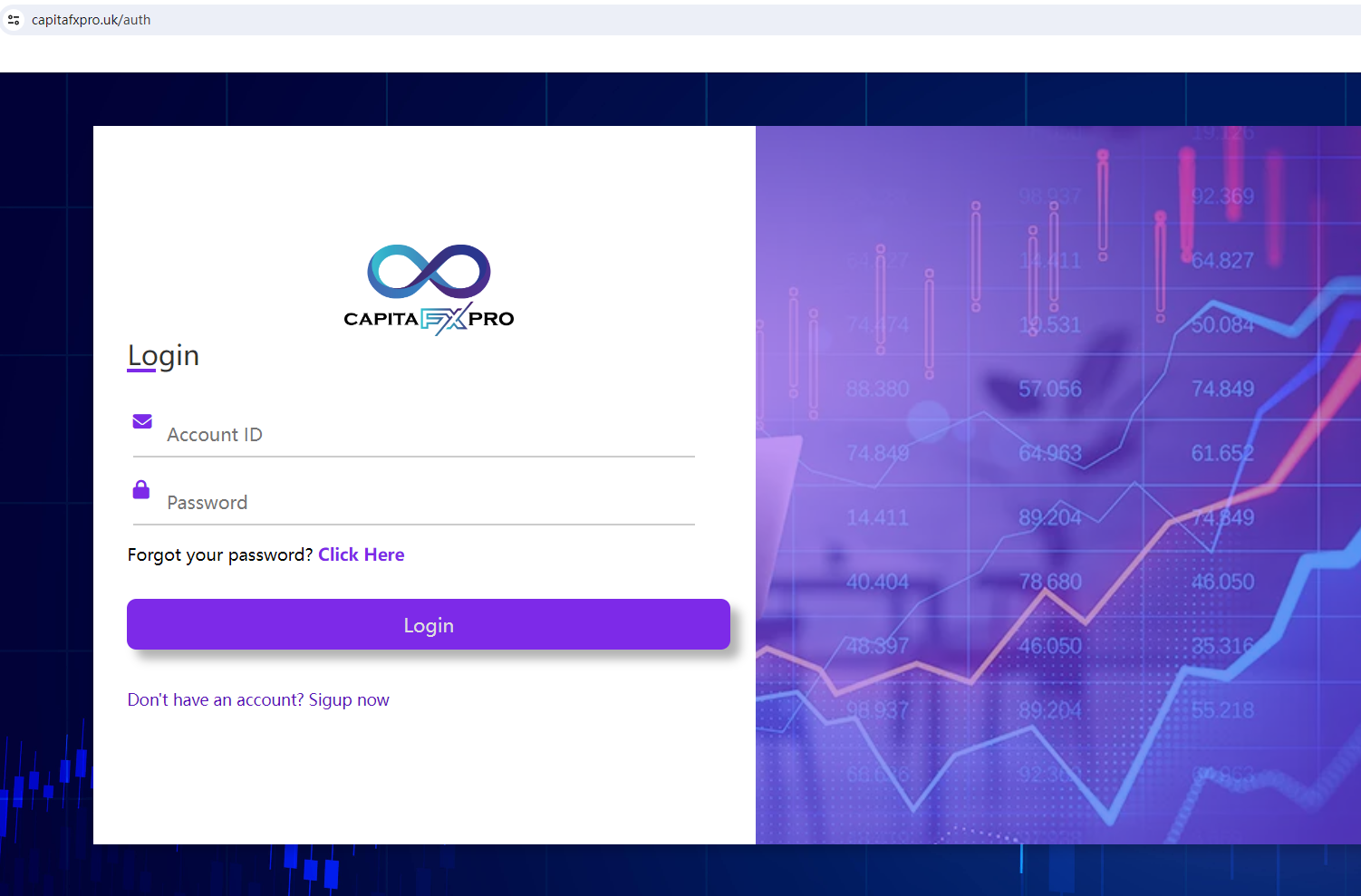 CAPITAFX PRO claims to be a reliable company without presenting any information about its regulation or contact. The lack of such important information may be a distinct signal of an unlicensed broker, as regulated companies always present their accreditations and licenses in a prominent position. It is a red flag.