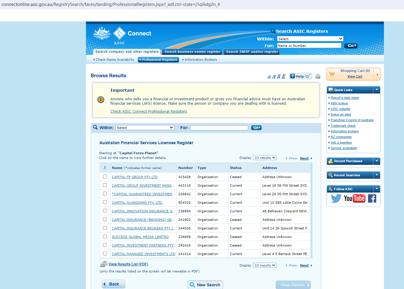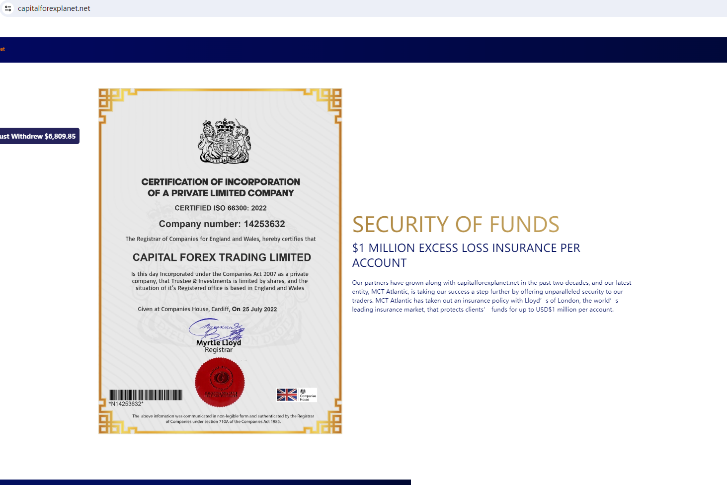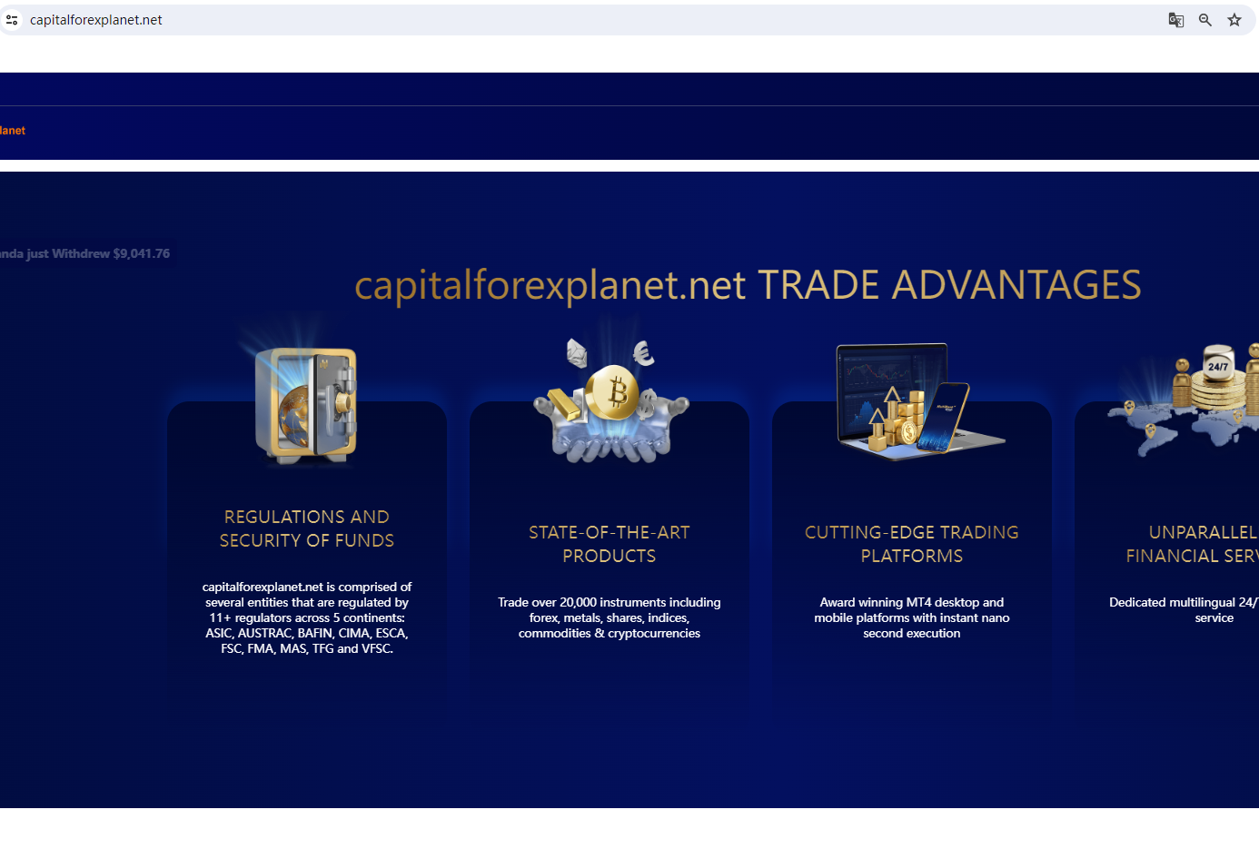 BrokersView found that the domain "https://www.capitalforexplanet.net/" is currently inaccessible. This is widely regarded as a significant red flag, as the suspension of a broker's website often points to underlying regulatory or operational issues.